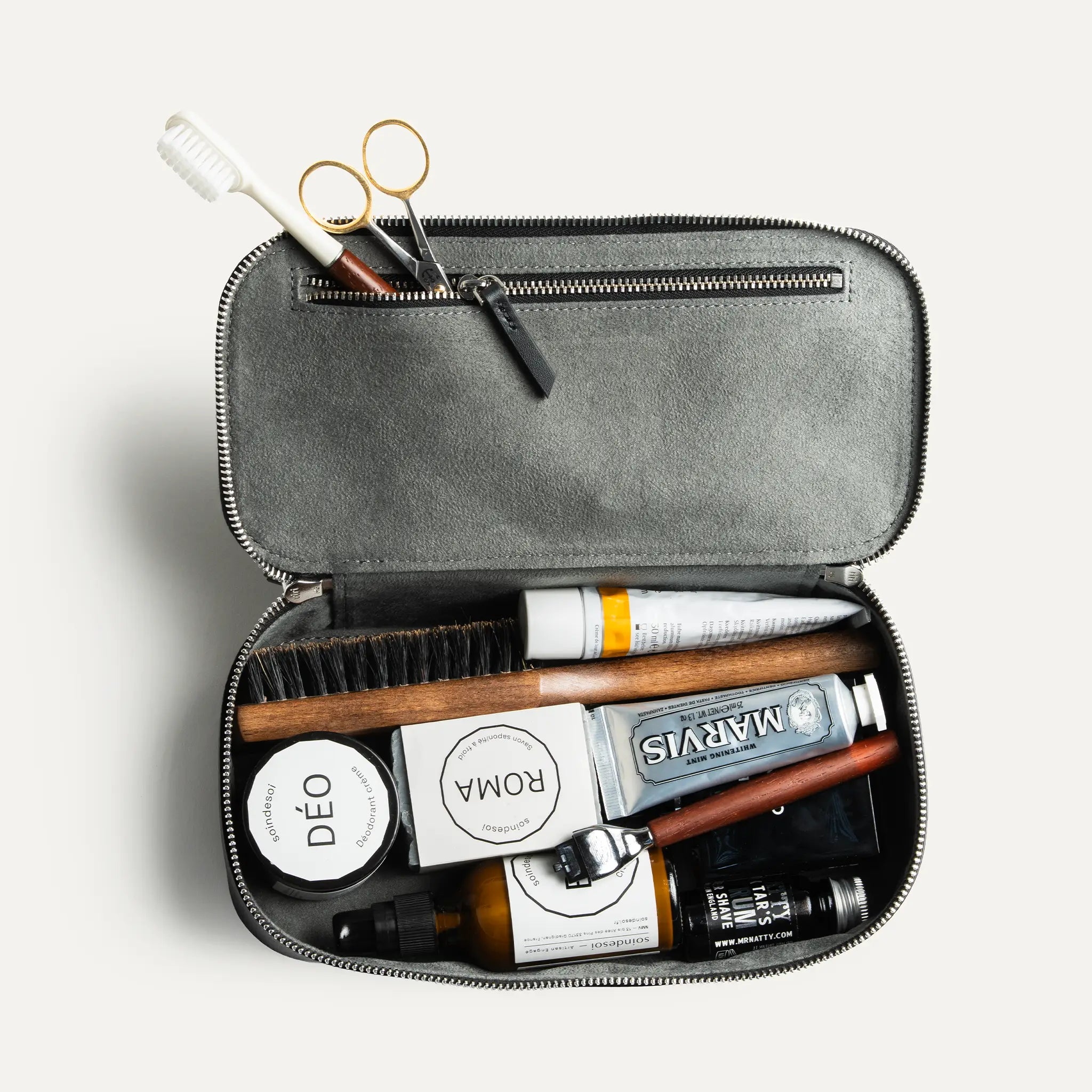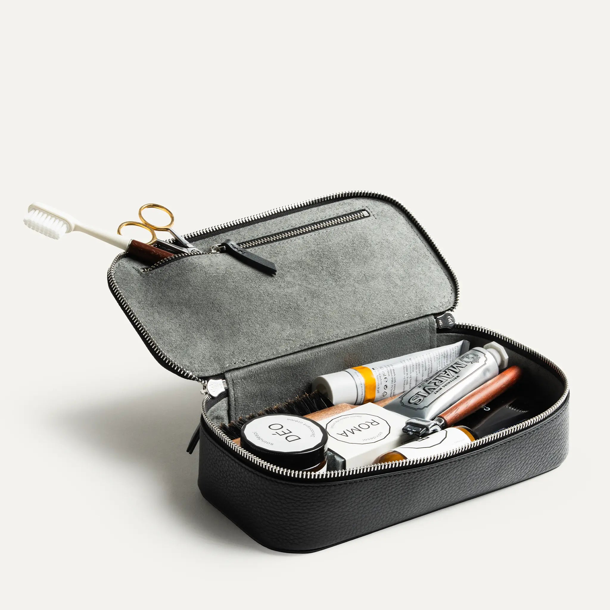L’intérieur est habillé de doublure Alcantara, une matière haut de gamme, douce et résistante, facile à entretenir au quotidien. Elle protège vos accessoires de toilette tout en apportant une sensation luxueuse à chaque utilisation.