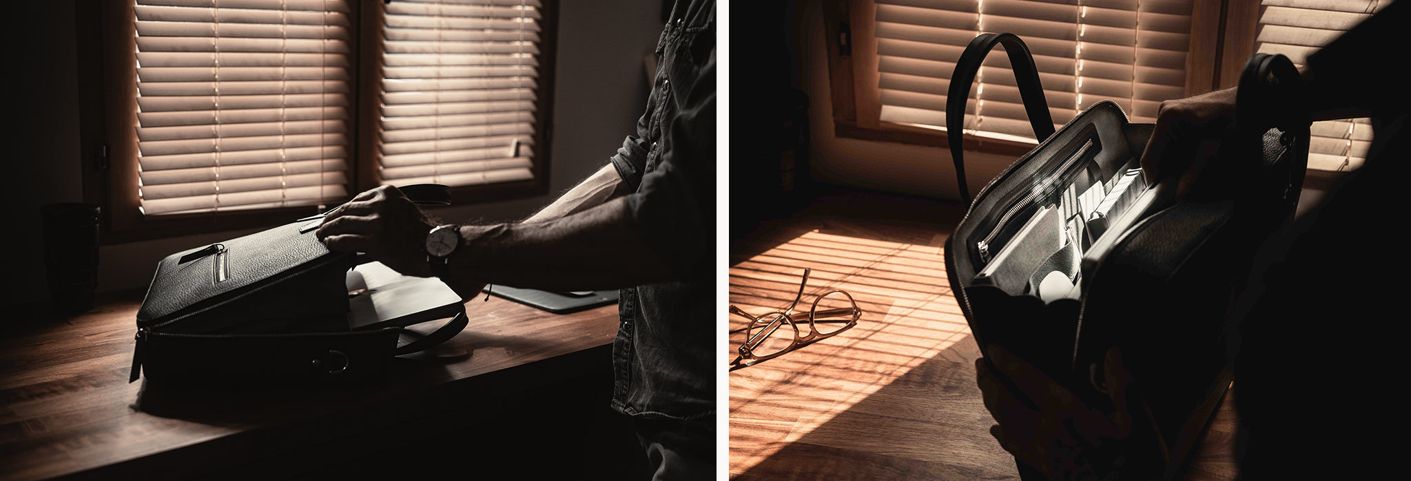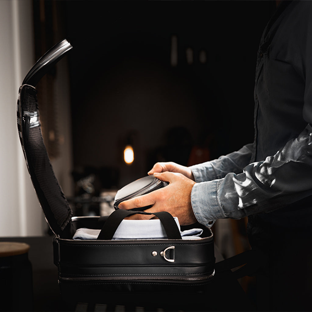 Le porte-documents OSCAR est livré avec une sangle en cuir amovible pour un porté épaule, et un pochon de protection pour le préserver au fil du temps.