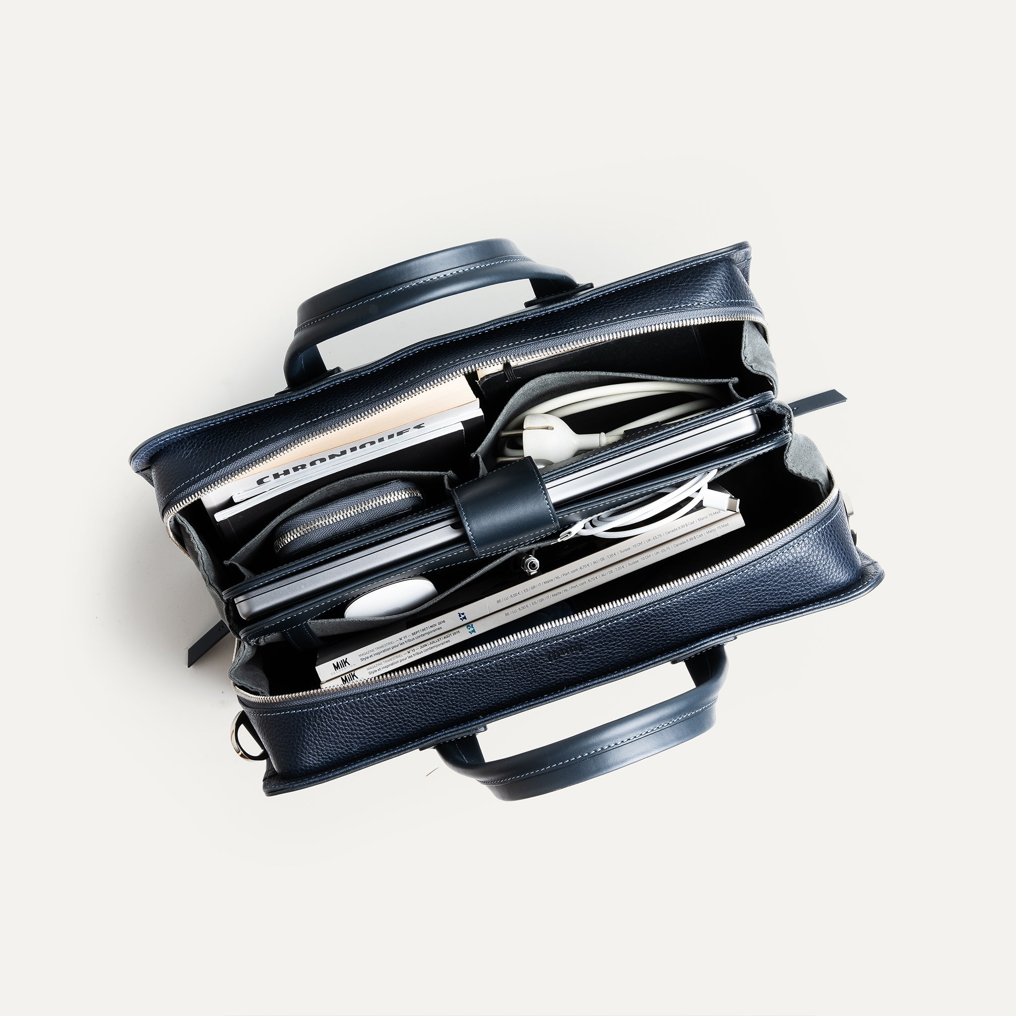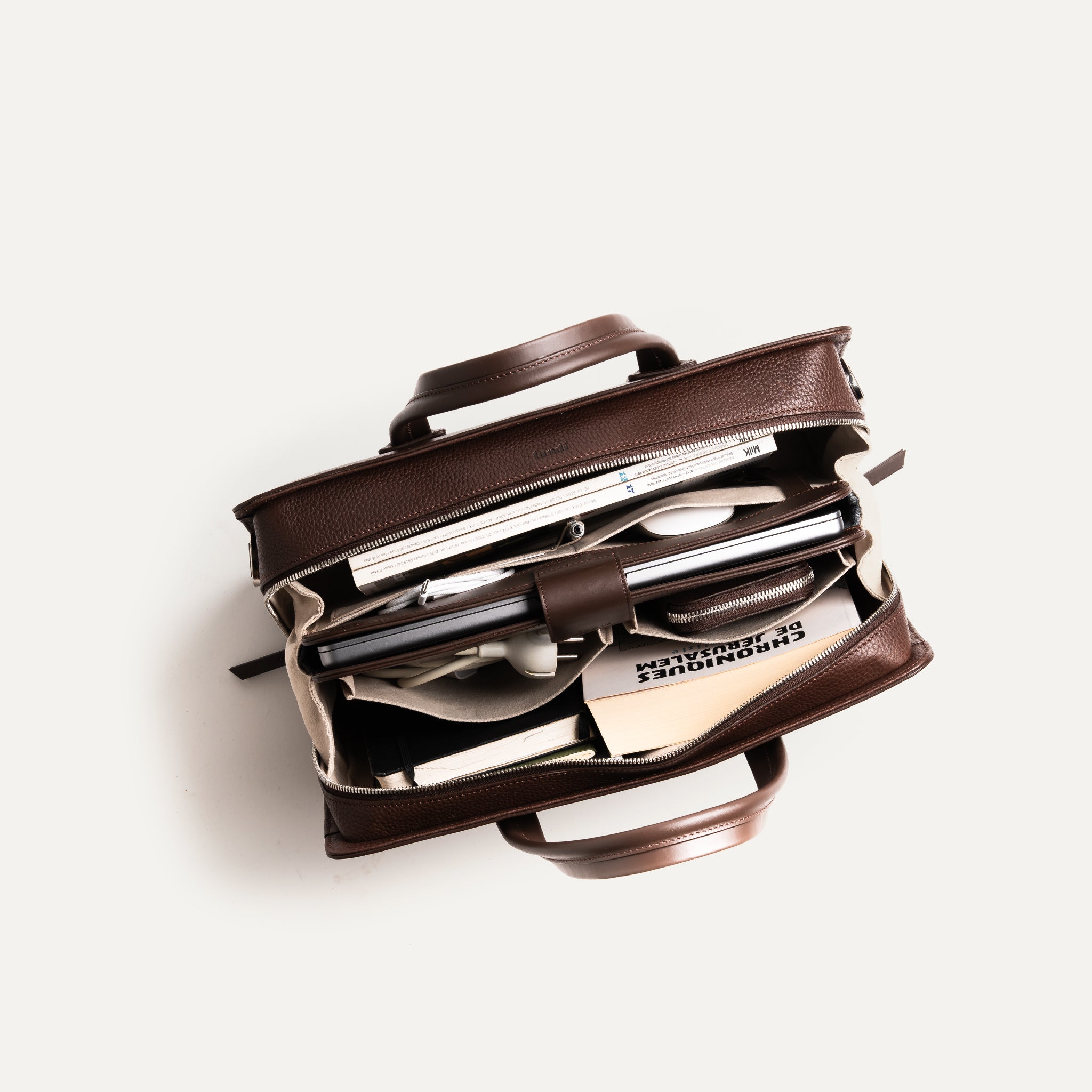 A collection structured around 3 different uses, each offering specific bag formats. Our Day bags will accompany you in your daily life, making it easier to organize your office accessories. They can be used as briefcases or backpacks. Our 36-hour bags allow you to travel for 2 days and 1 night, in a compact and devilishly efficient format. This format is also available as a handbag or backpack. Finally, our collection of travel bags is organized around 2 volumes, a weekender and a traveler. Comfortable volumes for multi-day travel, yet compact enough to accompany you in your carry-on.