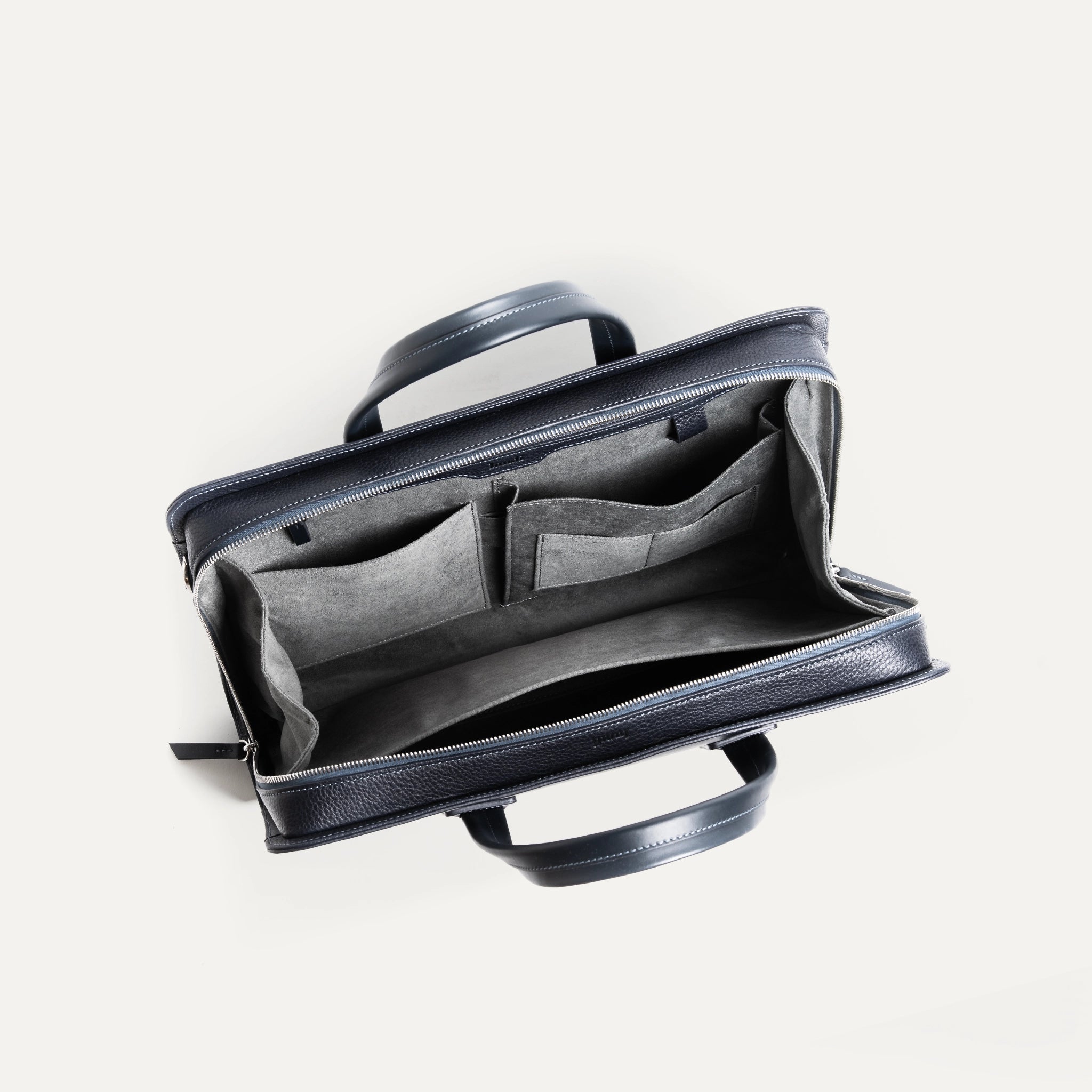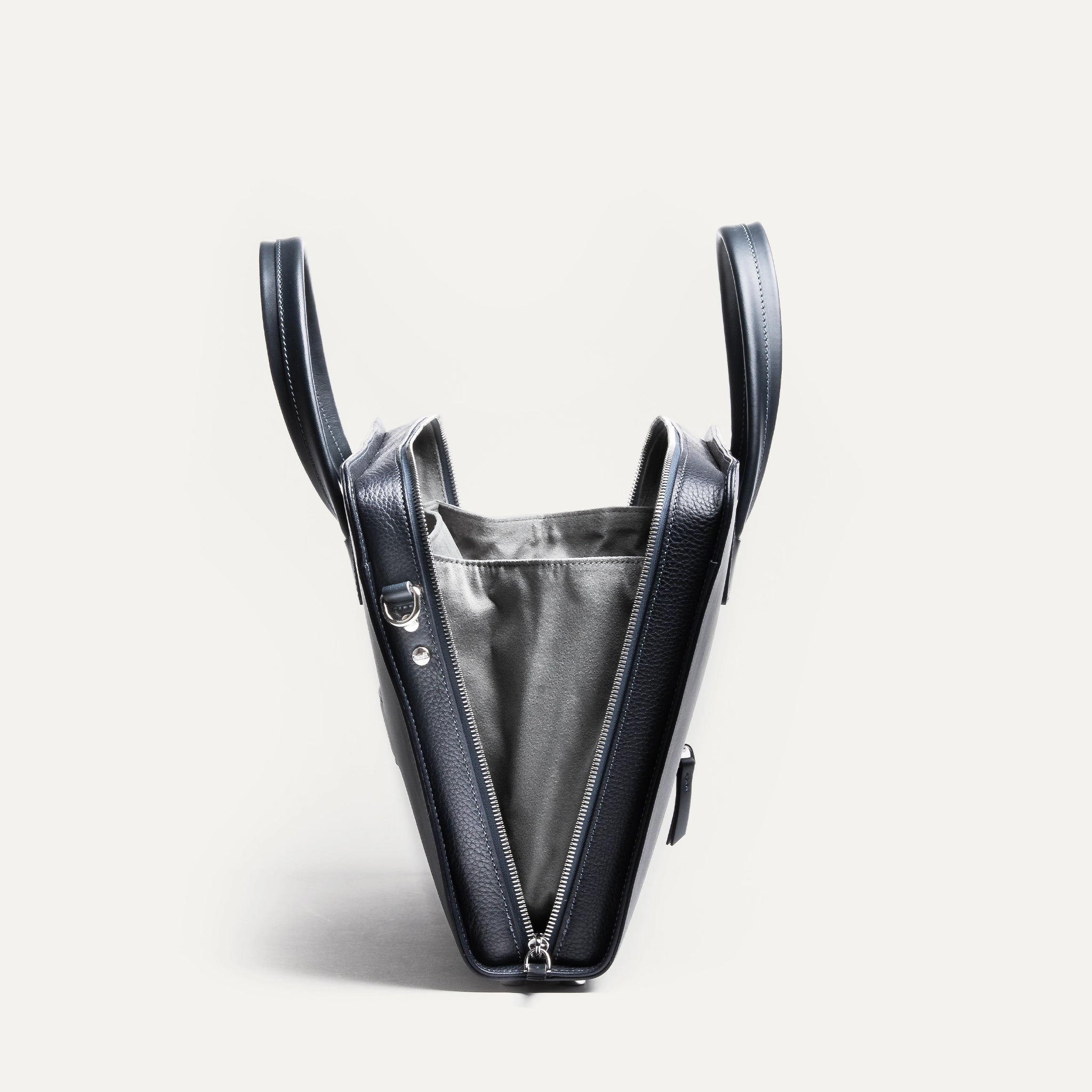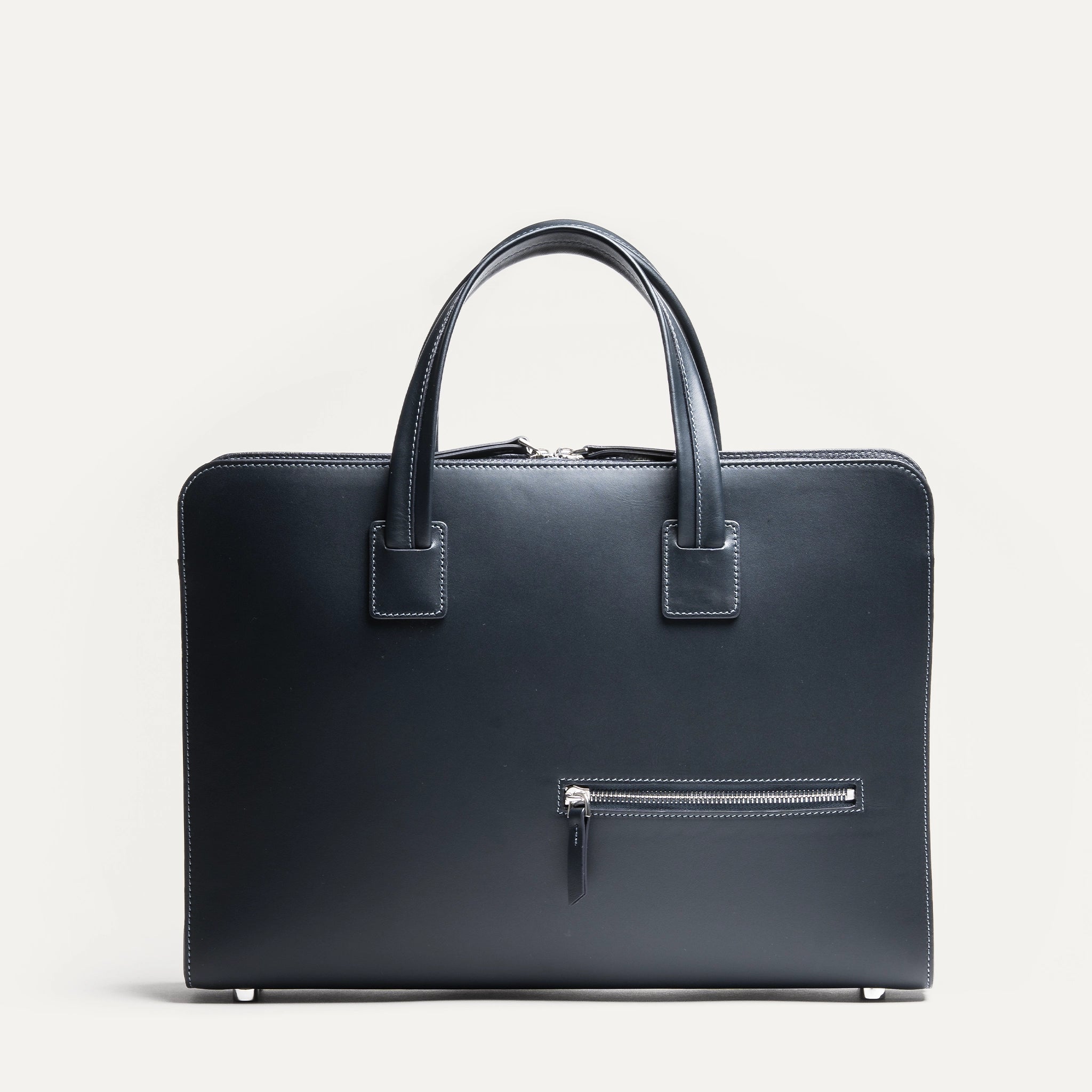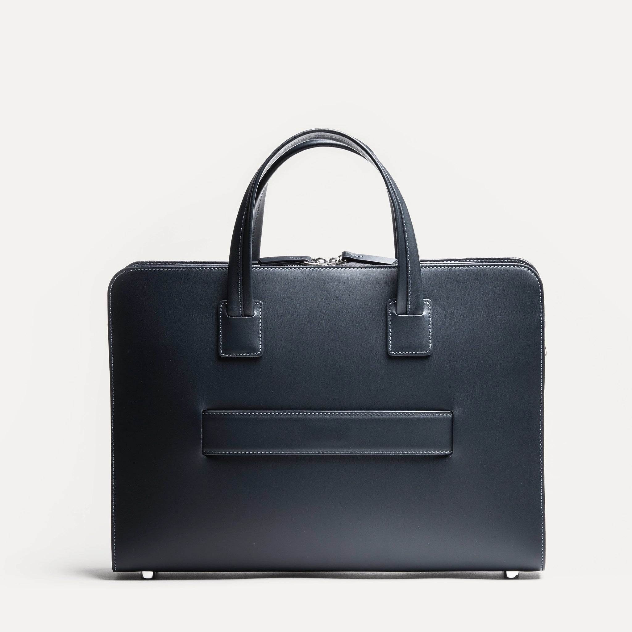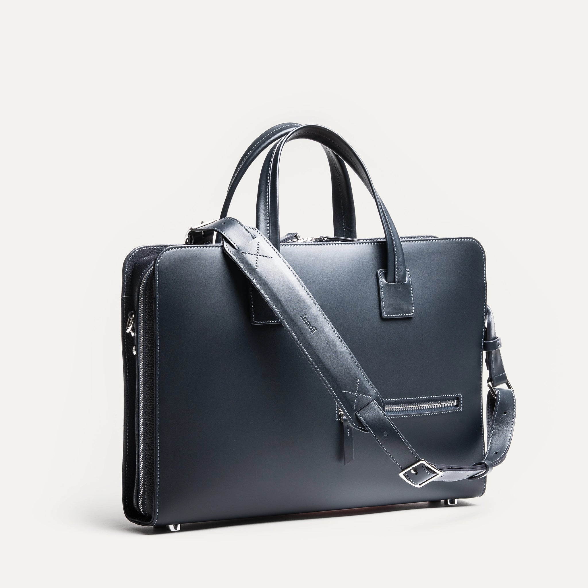 In its Navy version, the ISACK briefcase takes on a deep tone, almost black. A dense, subtle blue that reveals its nuance in the light — and delivers understated elegance.