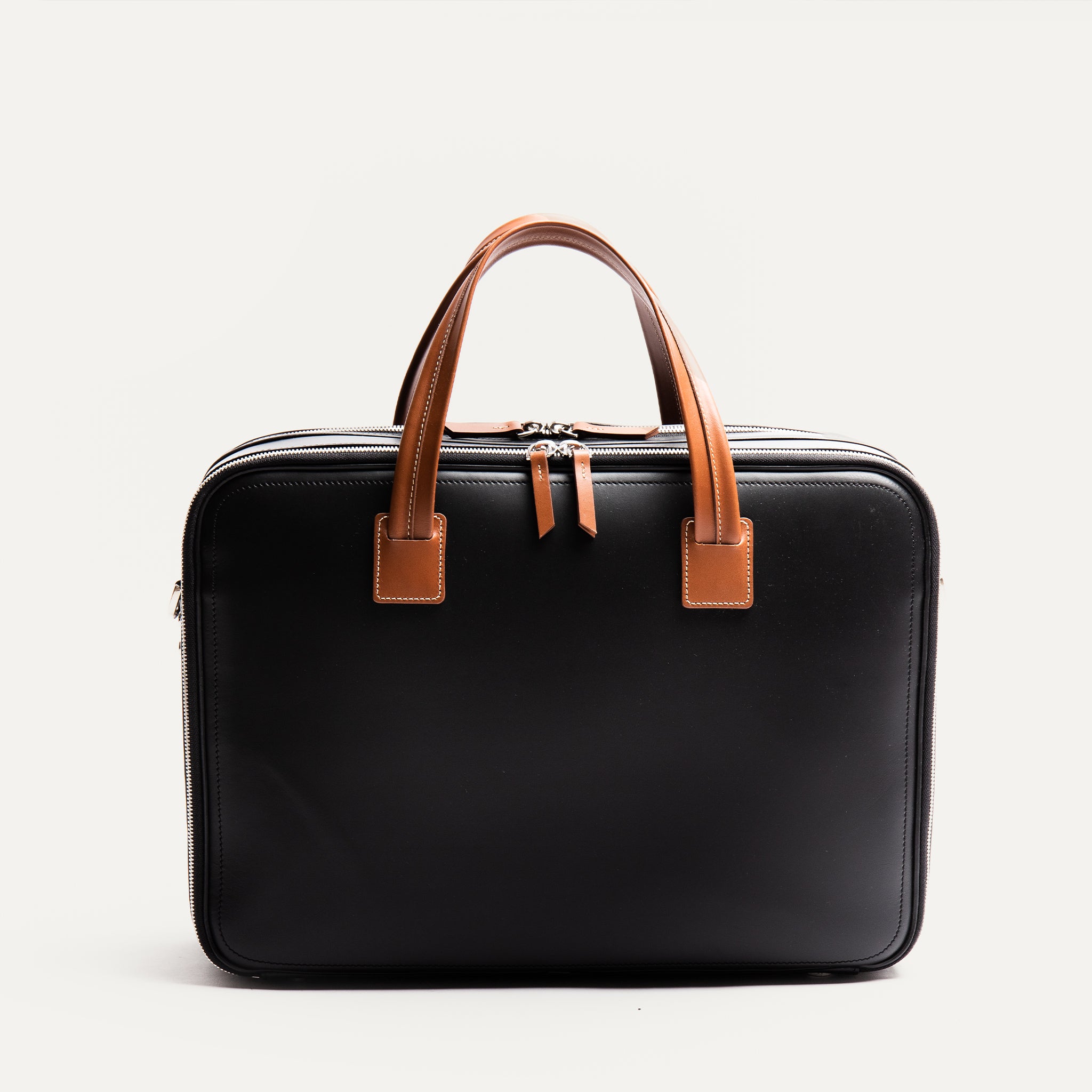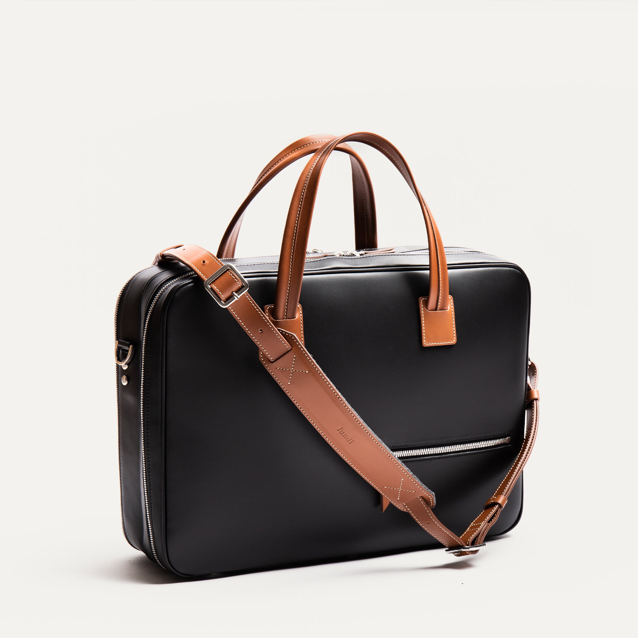 This model is the iconic version of our range with its contrasting handles. Made of vegetable-tanned leather, it will develop a patina over time for the most beautiful effect. As for functionality, our designers have worked on this bag so that it can accompany you on your short trips. Its double compartment will allow you to take with you your office stuff and your clothes. You will be able to travel with a single bag.