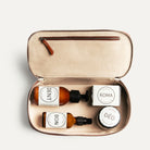 This kit has been designed for men seeking simplicity, refinement, and natural skincare. Whether traveling or in everyday life, it elegantly accompanies essential rituals thanks to its compact design, crafted from our semi-vegetable-tanned leather.