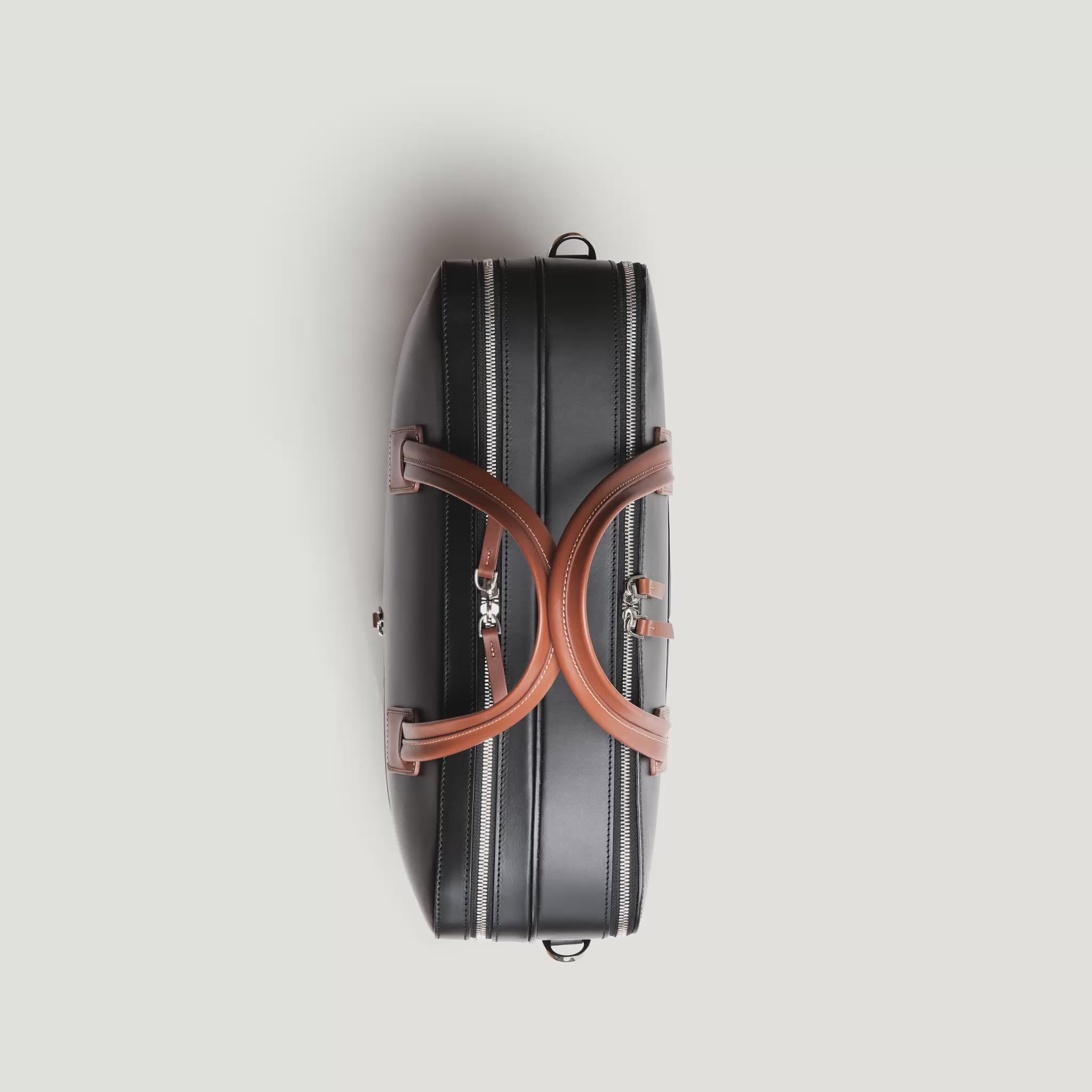 The striking contrast between the black body and cognac handles has become an iconic design feature. Made from full-grain vegetable-tanned leather, the Bellecourt bag gains a unique patina over time, enhancing its character and charm.