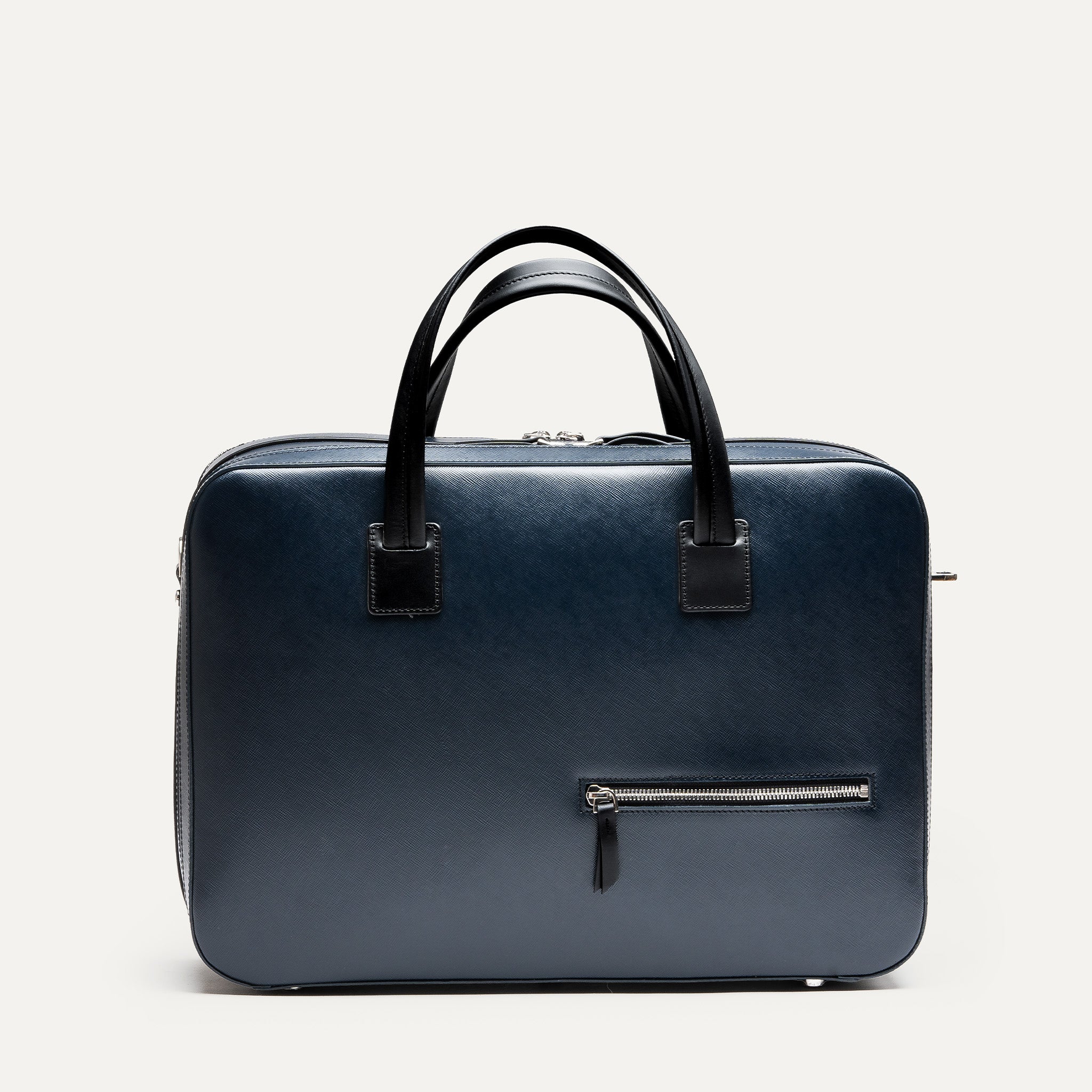 Crafted from embossed Saffiano leather, this bag showcases deep and luminous navy shades. The light satin finish adds a subtle sophistication, while ensuring long-lasting durability and elegance.