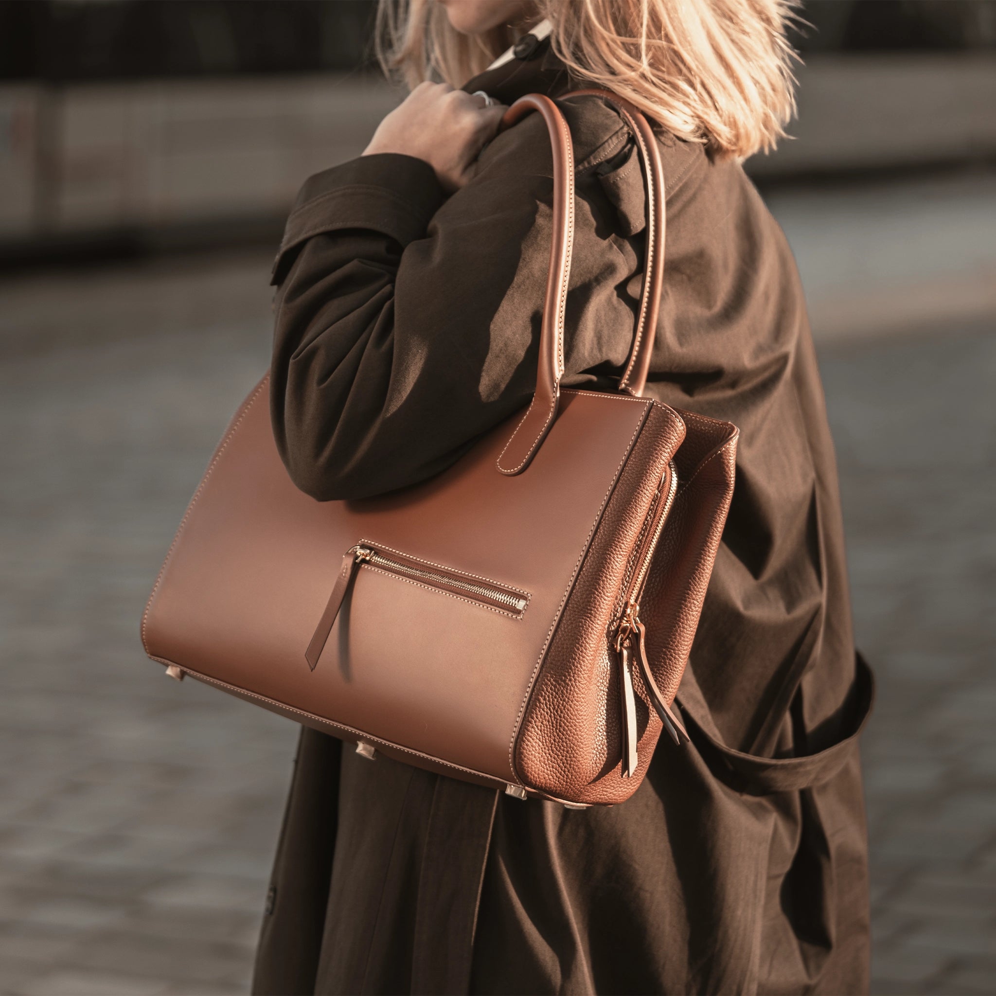 Chiara is part of our elegant women’s range, which includes the Emy tote bag, the Lena briefcase, and the Stella wallet. Available in Black, Cognac, and Brown, it complements every wardrobe with understated luxury.
