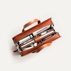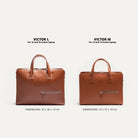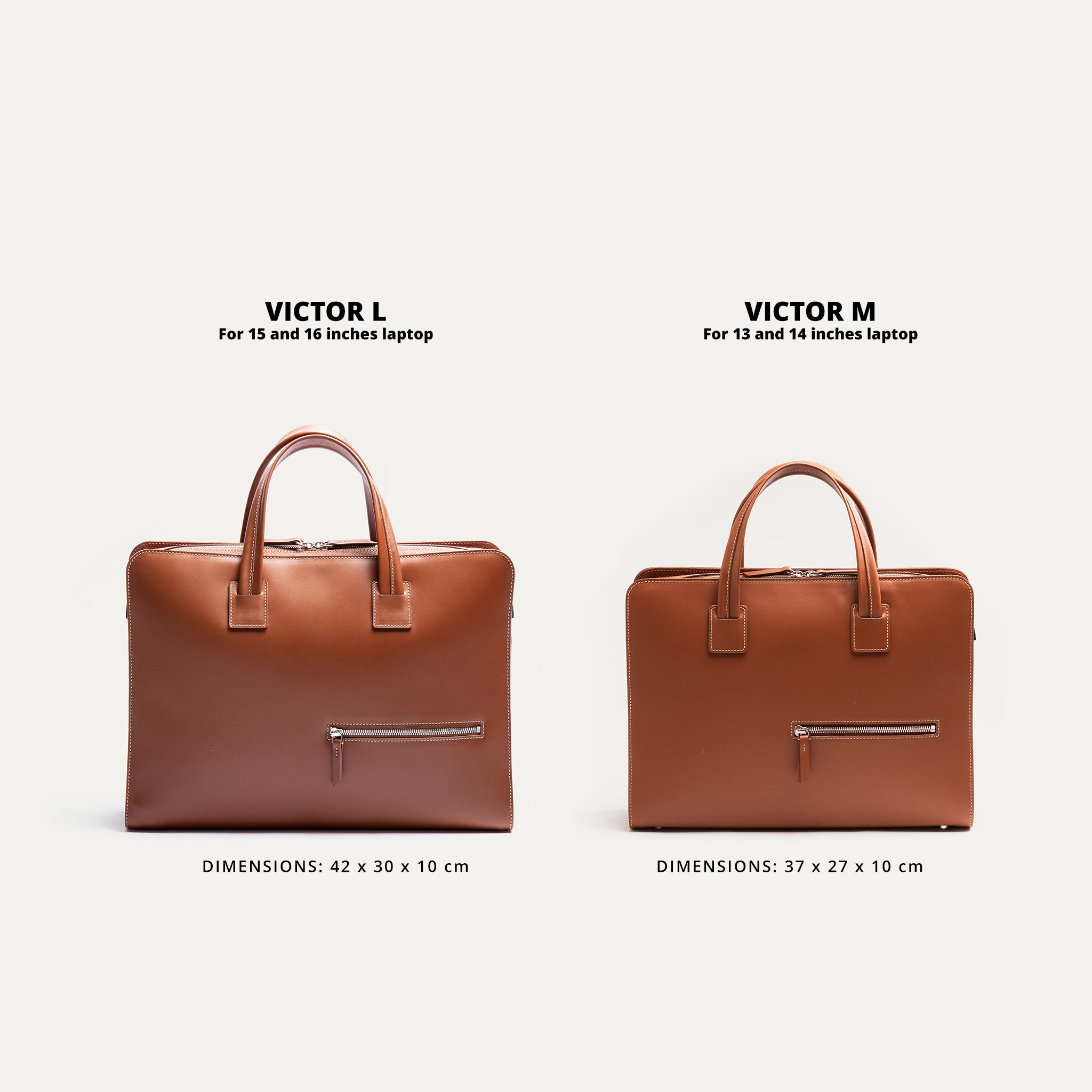 The Victor M bag is crafted from a mix of our smooth leather and grained leather — both selected for their durability and timeless appeal. The semi-vegetable tanning process minimizes the use of chemicals in favor of natural tannins, aligning with a more responsible production approach.