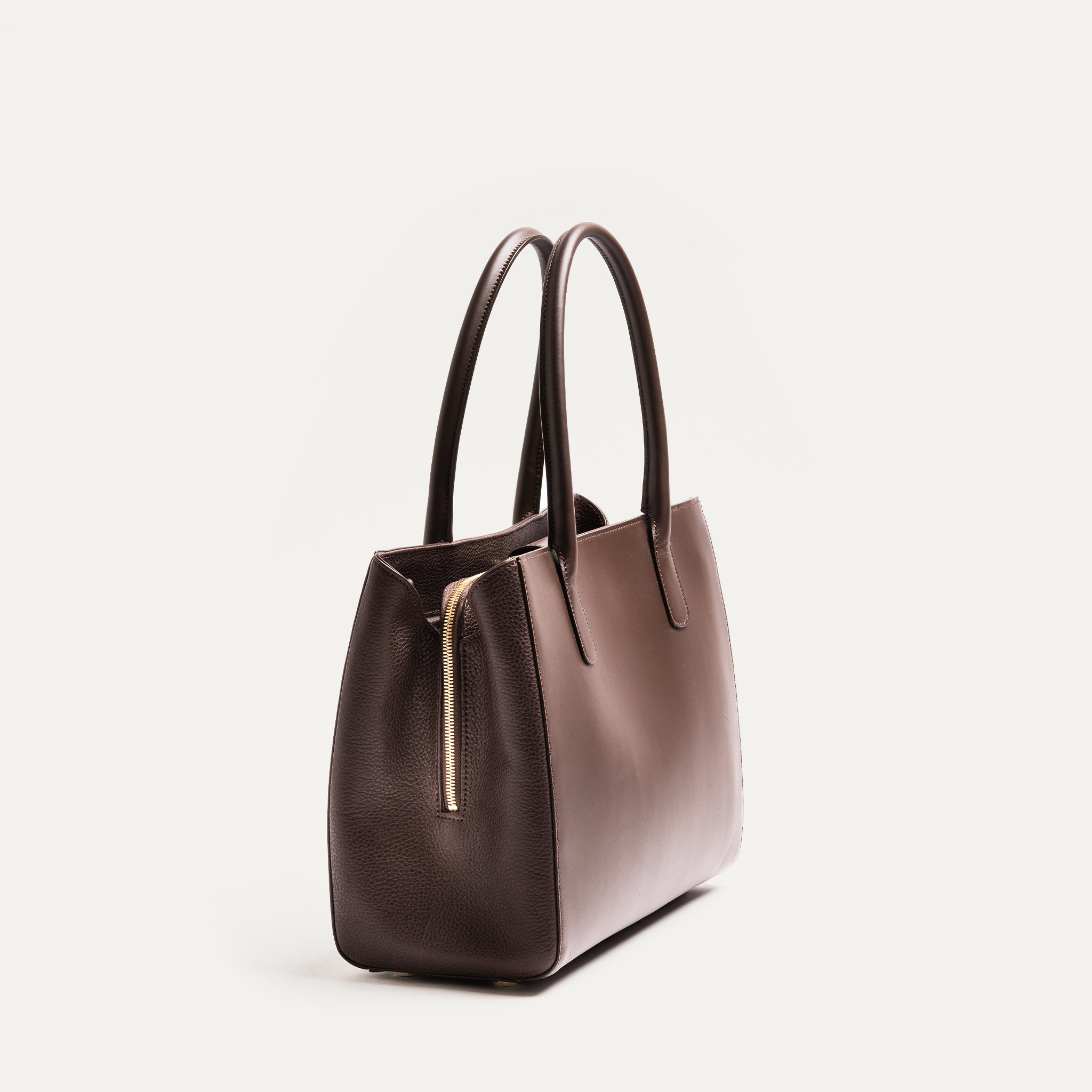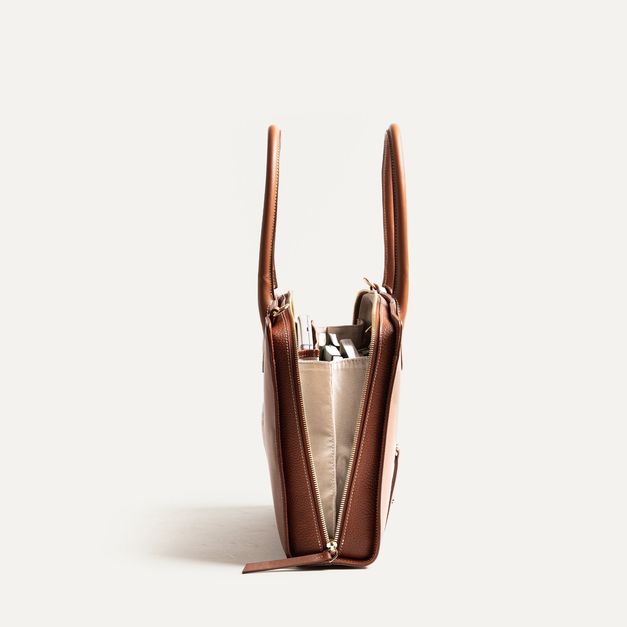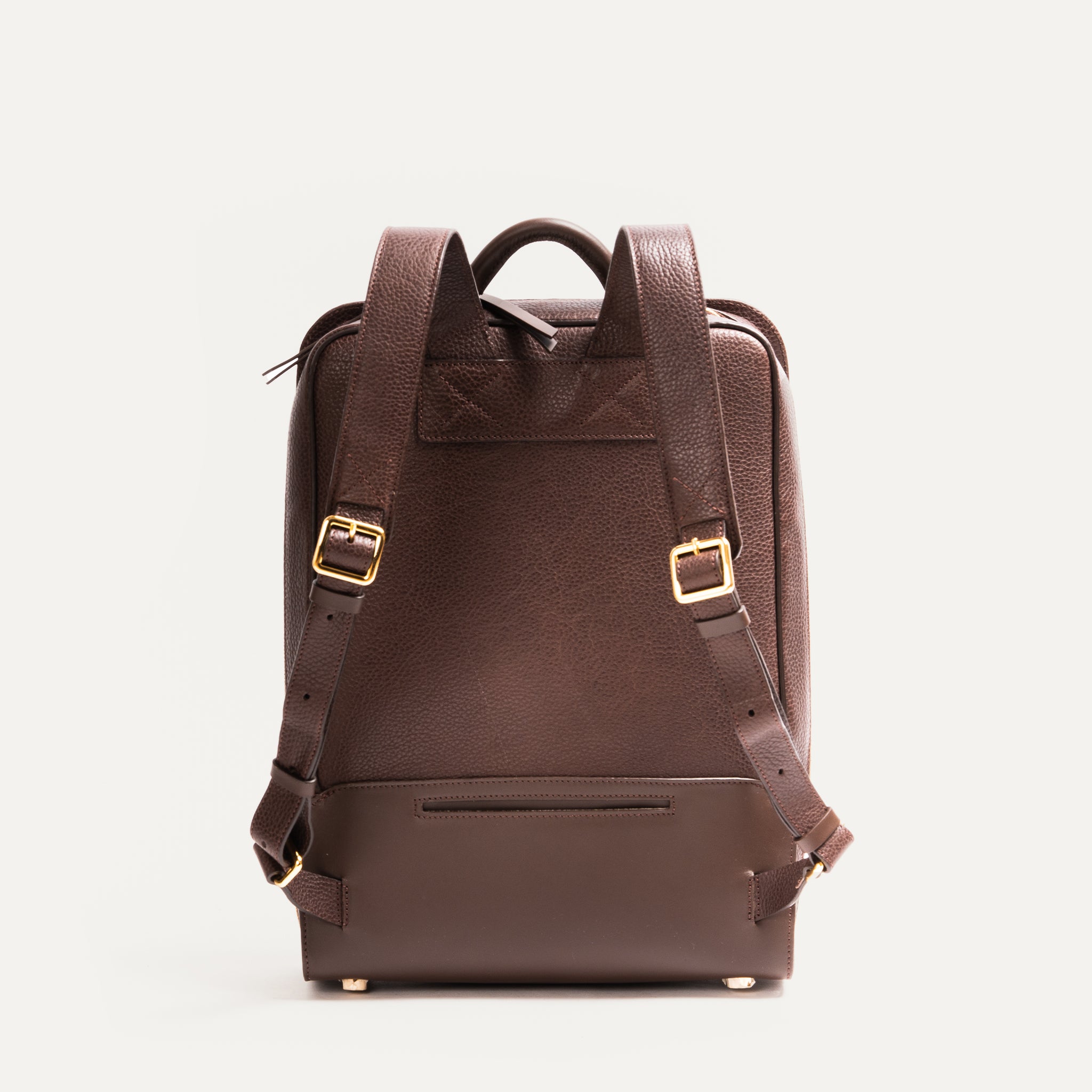 Created by our design studio, the Chiara backpack harmoniously combines functionality and aesthetic appeal. Every detail is crafted to meet the needs of an active woman who appreciates minimalist and timeless design. It pairs our smooth and grained leather, both naturally tanned, and features golden metal hardware for a sophisticated touch.