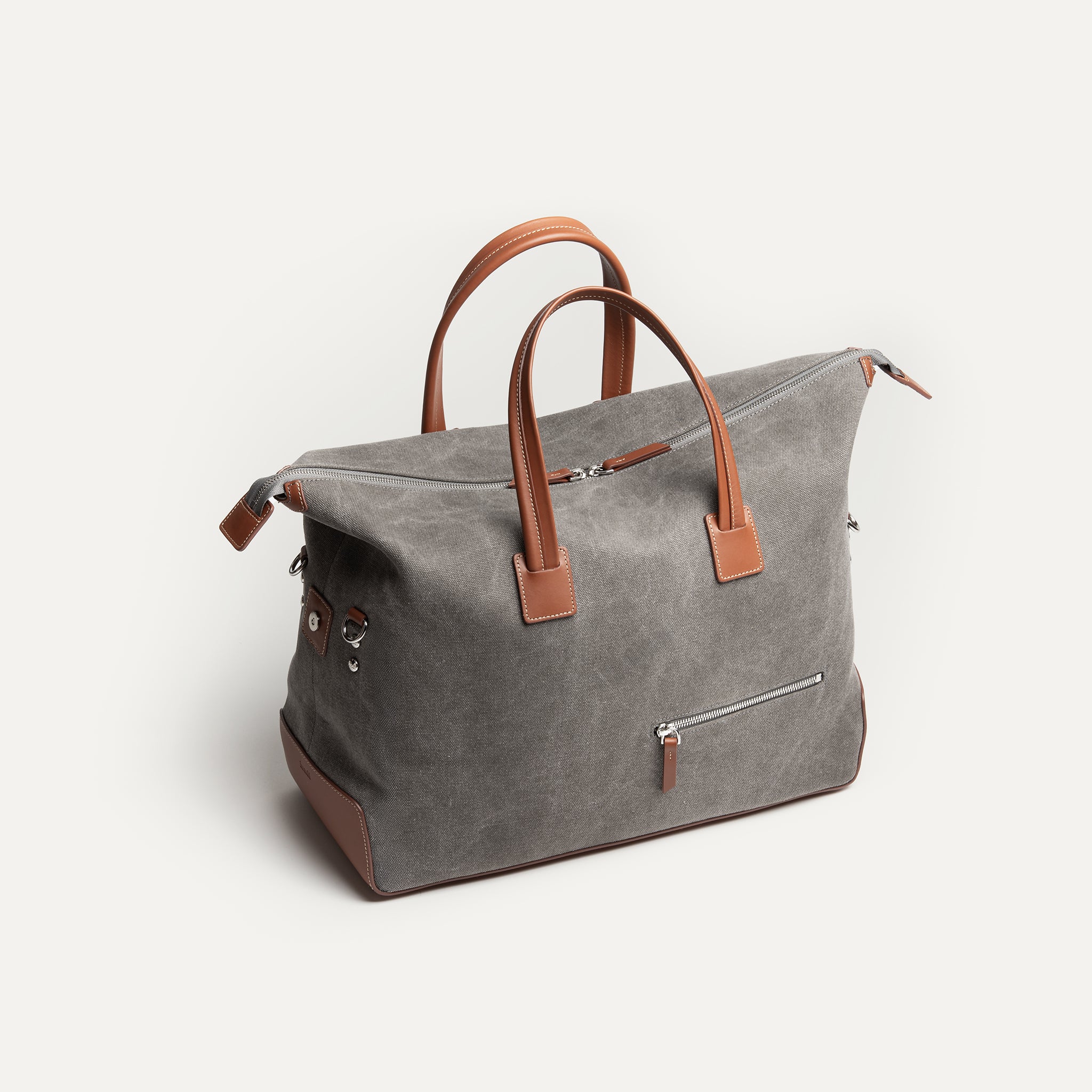 Sac de voyage 48h Femme ~ AUGUSTIN ~ Toile grise & cuir cognac