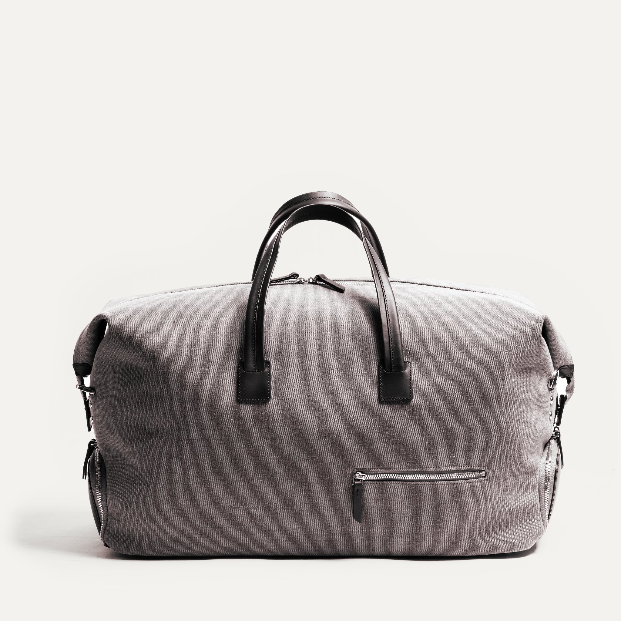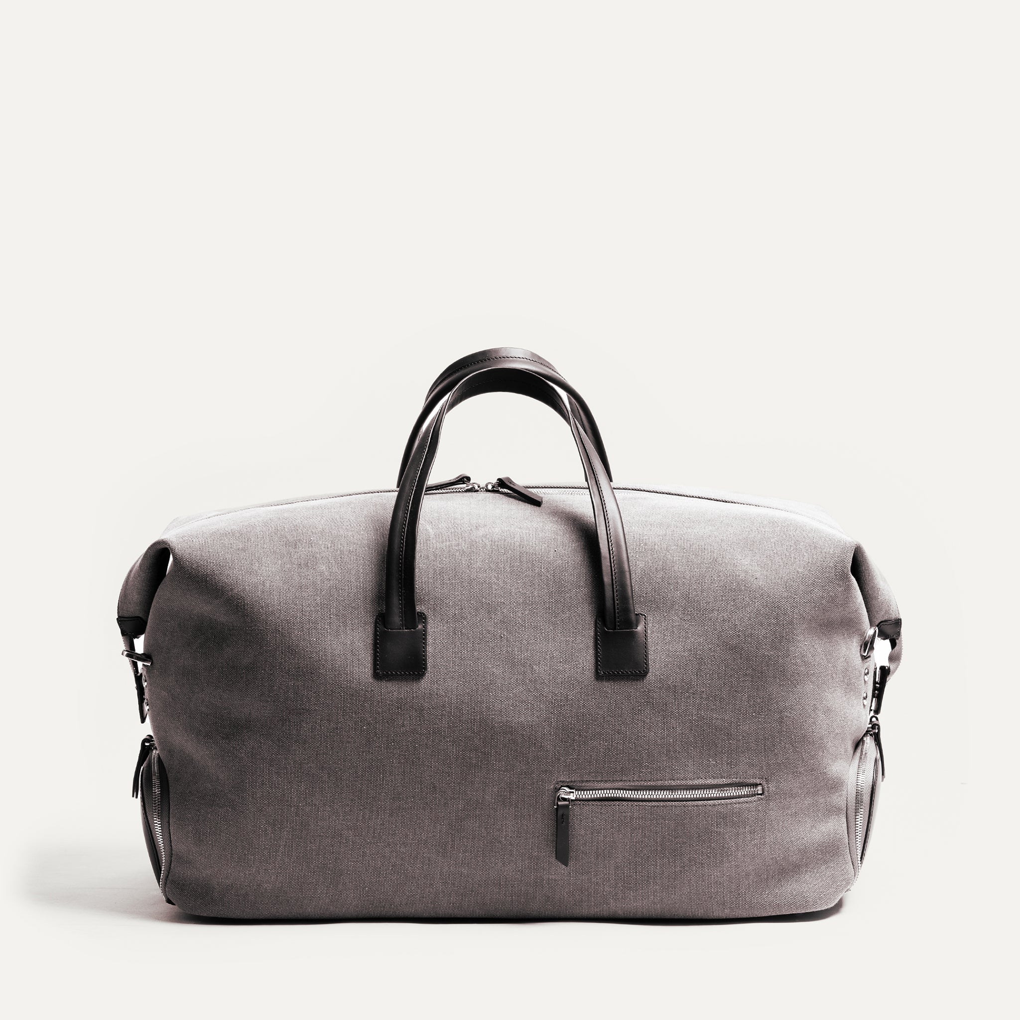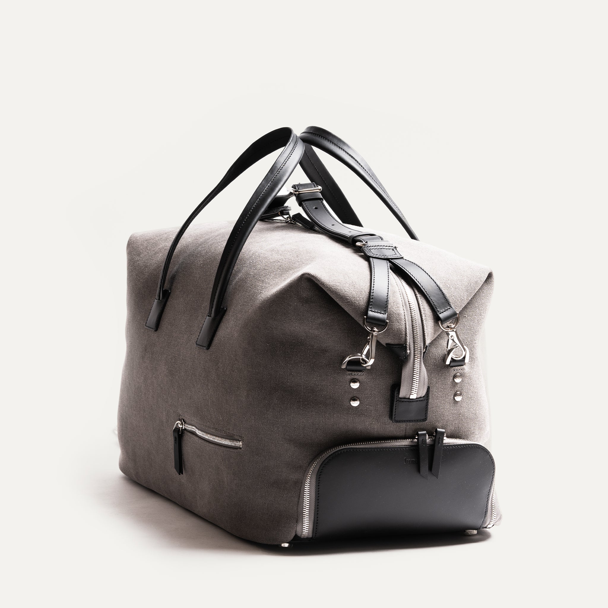 Le Remington gris et noir est pour la femme qui voyage avec l'essentiel — et seulement l'essentiel. Sa toile grise associée à notre cuir noir compose une silhouette épurée et contemporaine, aussi élégante en cabine qu'à destination. Un sac qui dit beaucoup, sans en faire trop.