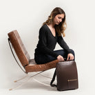 Le sac Chiara marron complète parfaitement notre gamme féminine, qui comprend également le cabas Emy, le porte-documents Lena et le compagnon Stella. Il se décline aussi en noir et cognac.