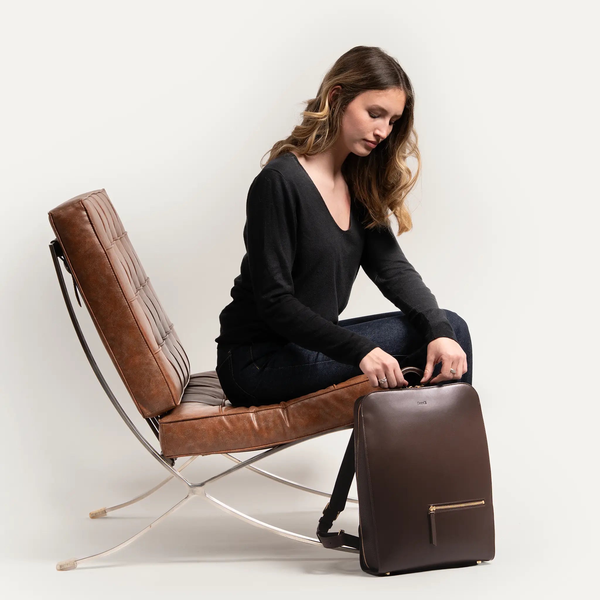 Nous aimons la ville et ses méandres. C’est pourquoi le sac à dos Chiara marron a été pensé comme le compagnon idéal de votre quotidien. Que vous vous déplaciez à pied, à vélo ou en transports en commun, son design fonctionnel et son confort en font un choix judicieux pour les femmes actives.