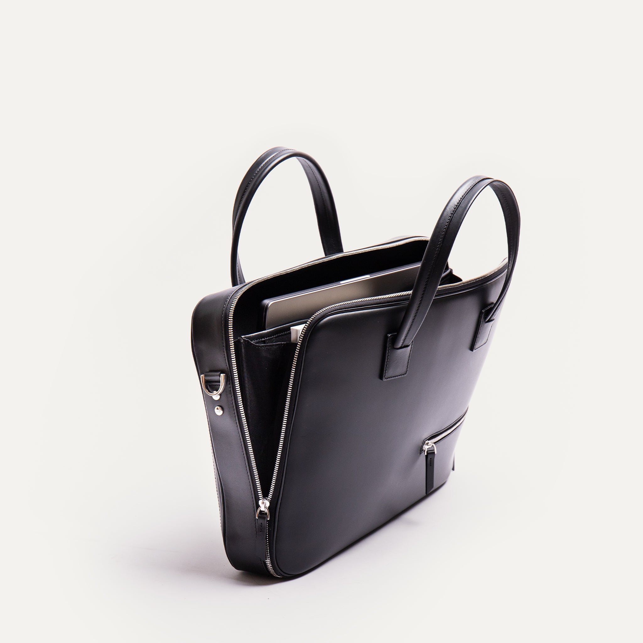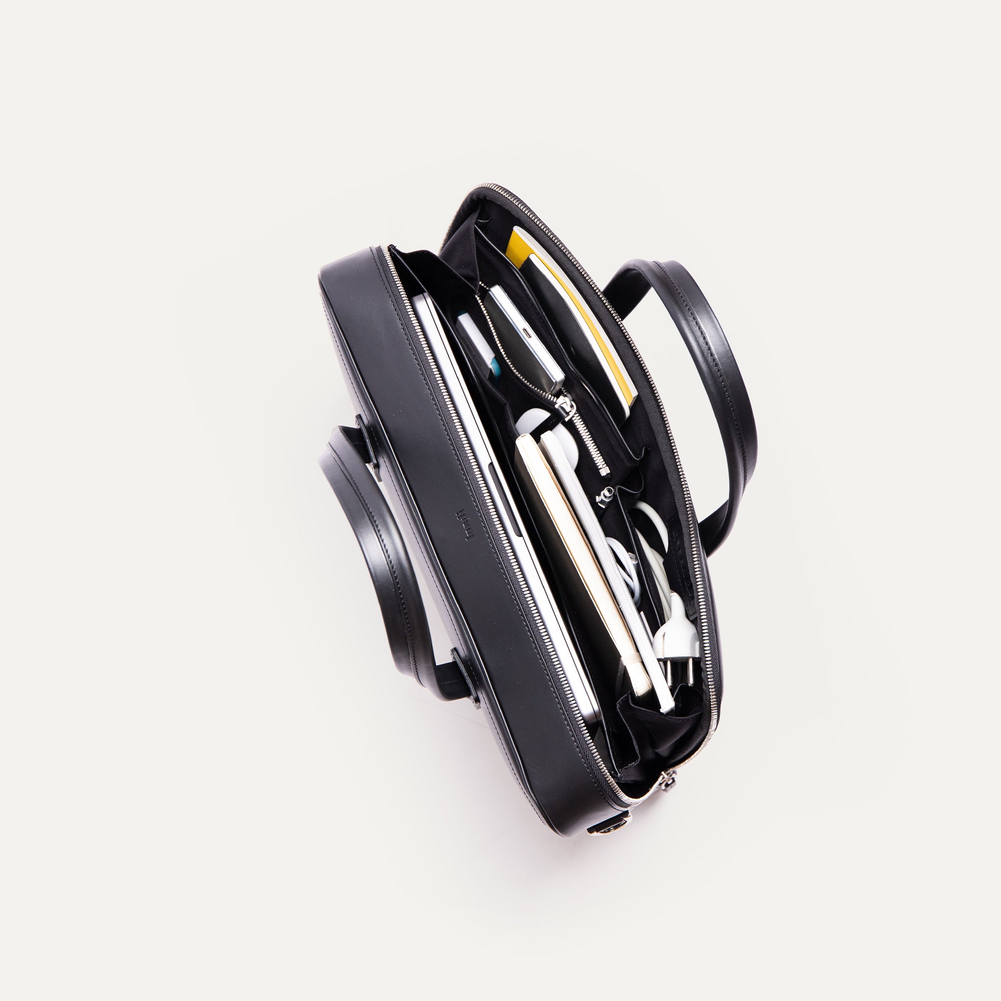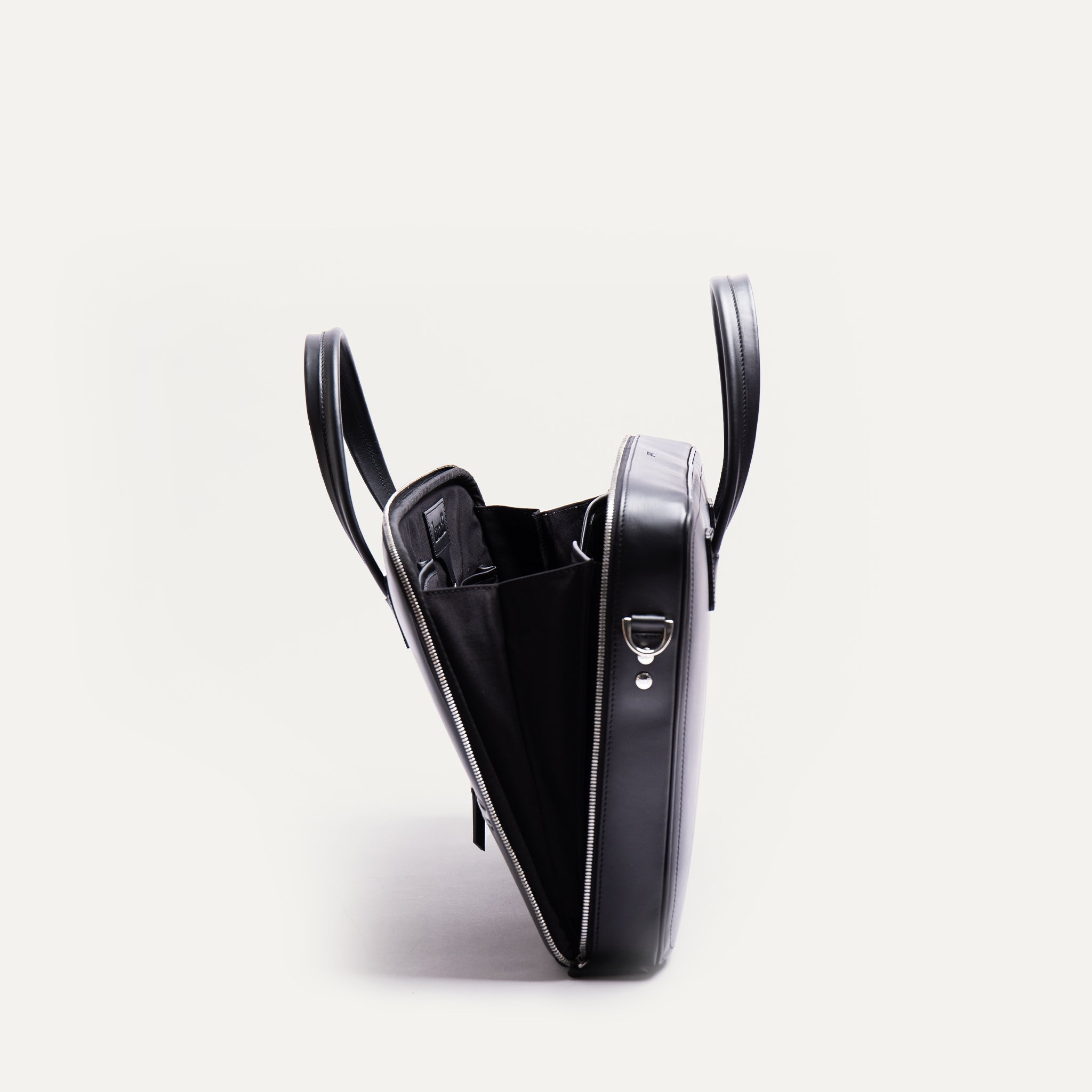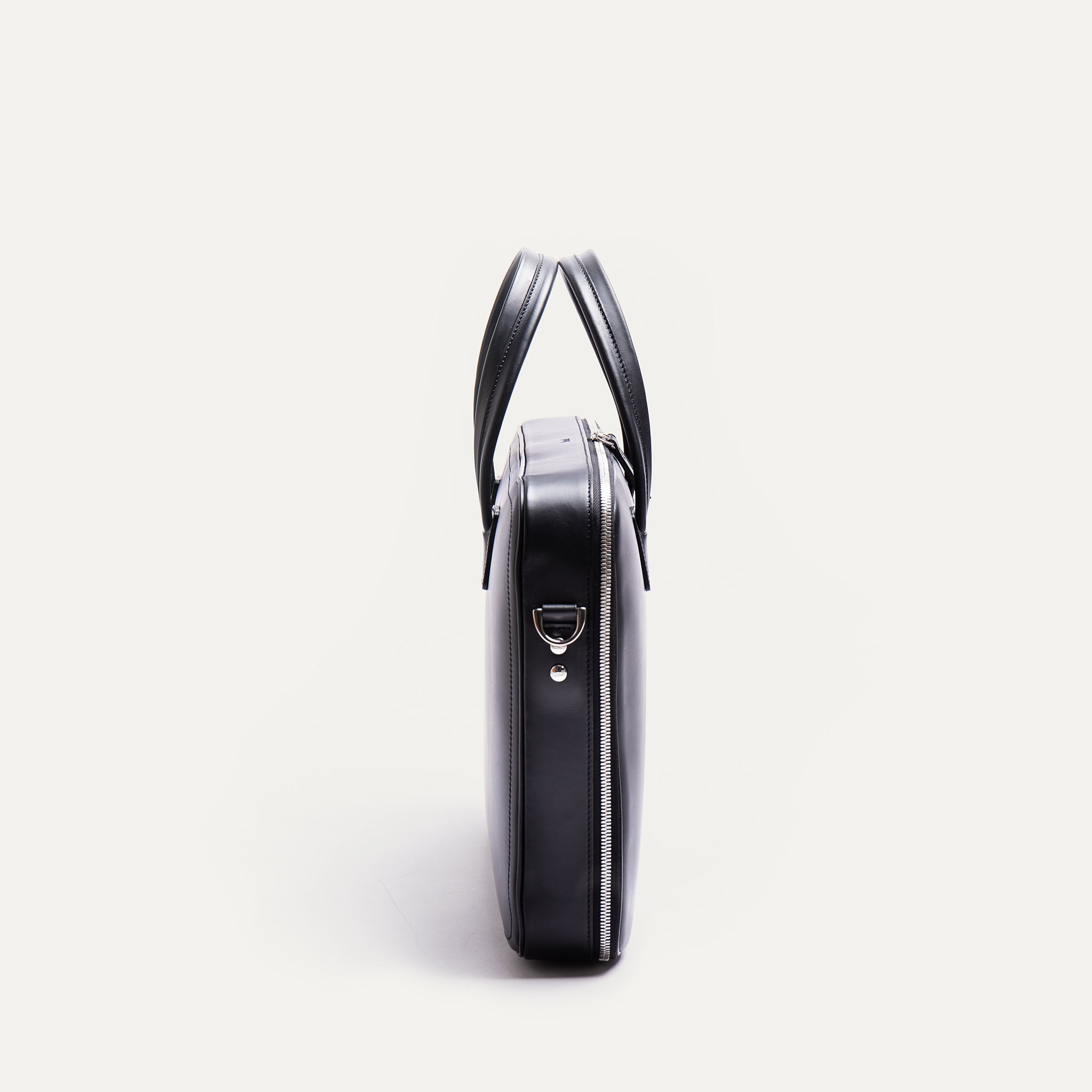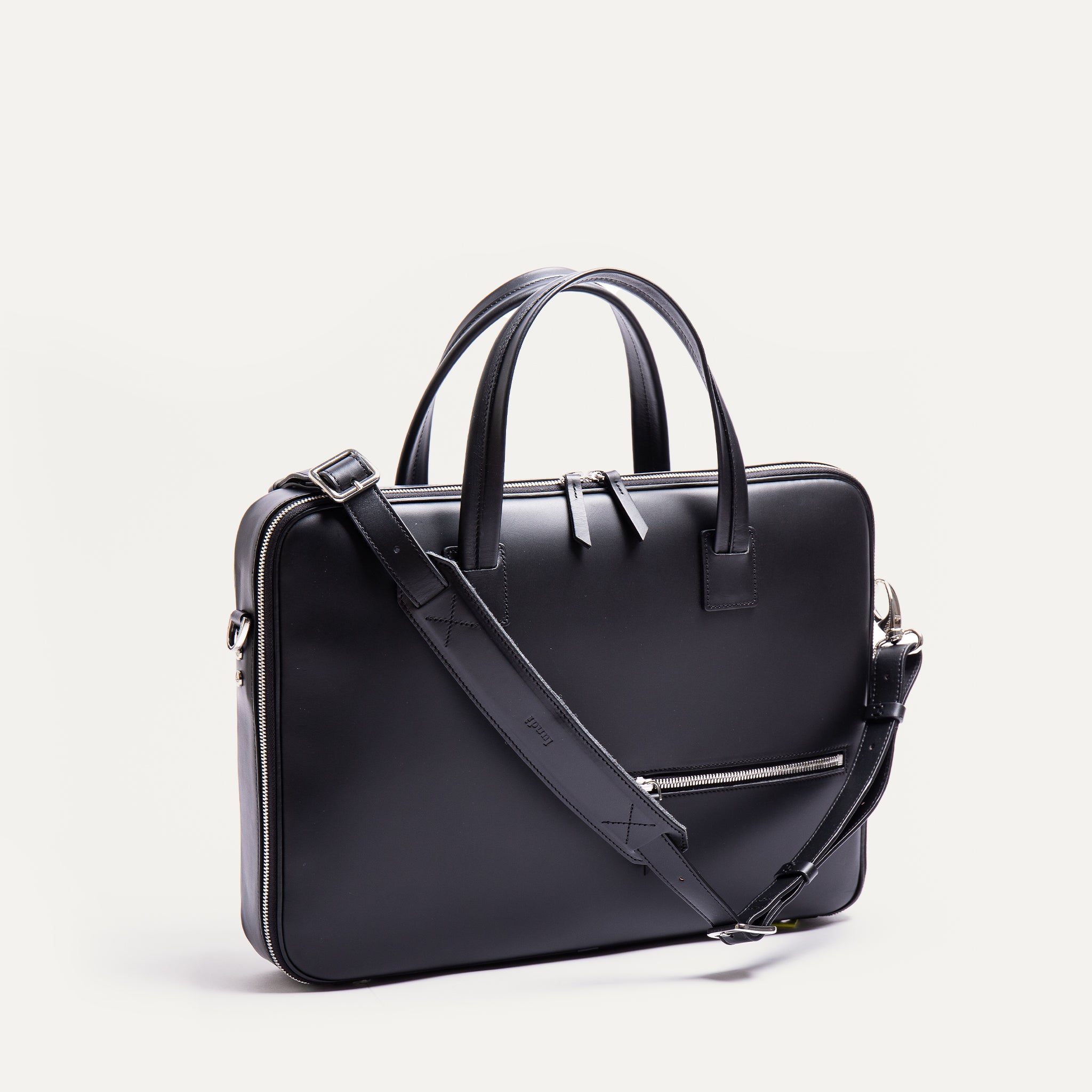 Nous souhaitions un noir mat pour ce briefcase Alessandro. Il est proposé dans notre cuir au tannage végétal, un cuir a l’aspect naturel d’une grande qualité et qui vous accompagnera pendant de longues années. Des rangements optimisés permettent à tous vos accessoires du quotidien de trouver leur place dans ce sac compact et diablement efficace.