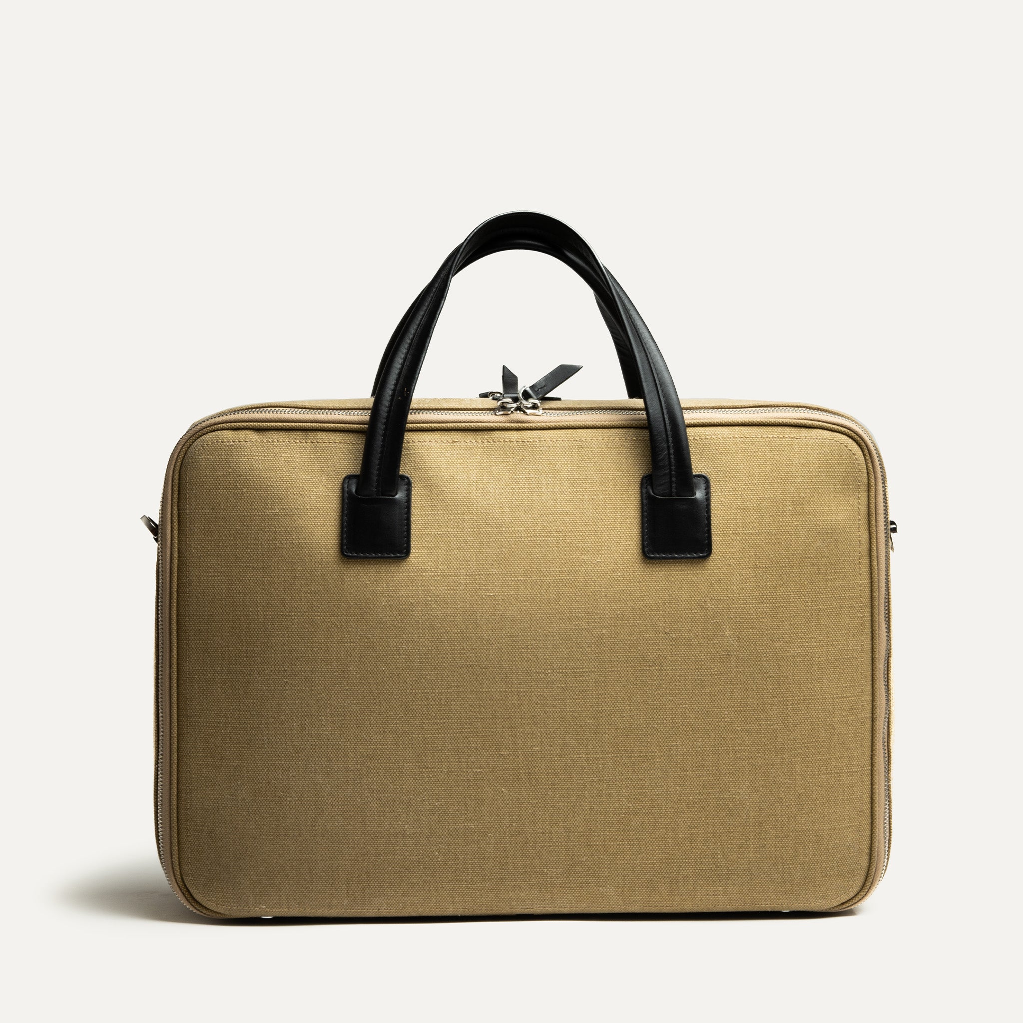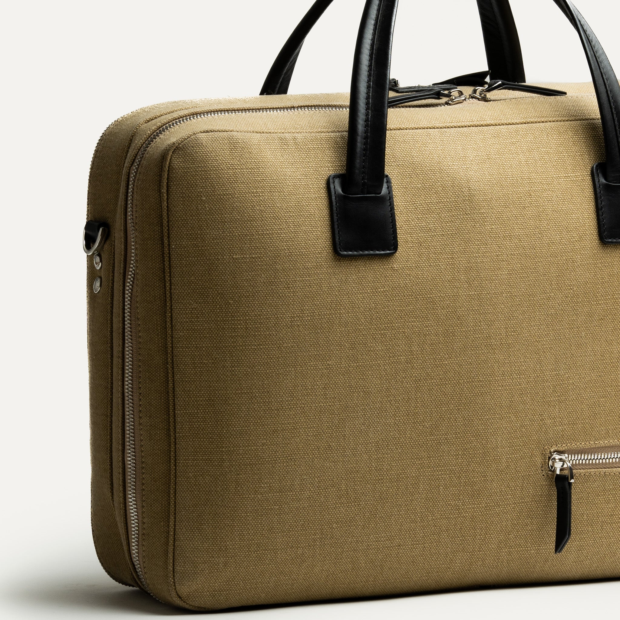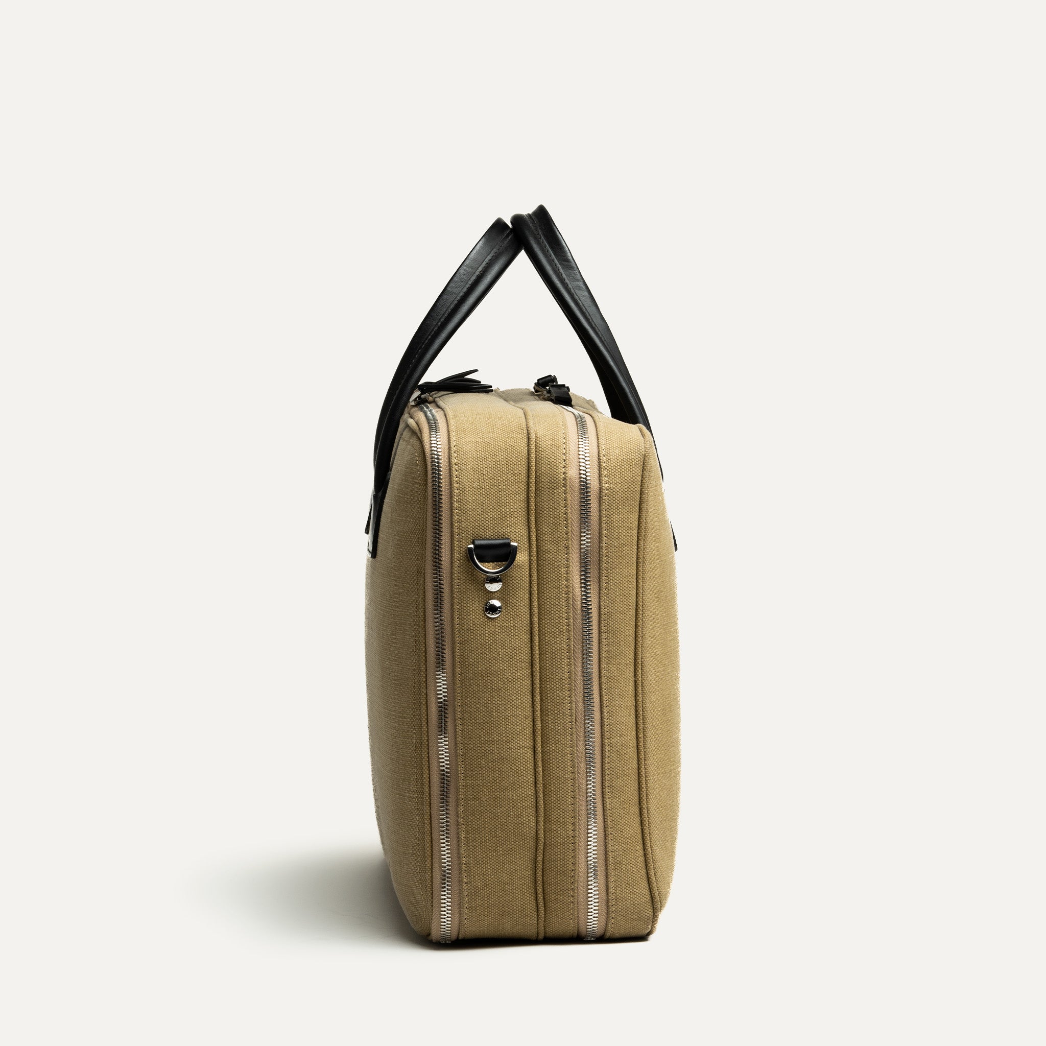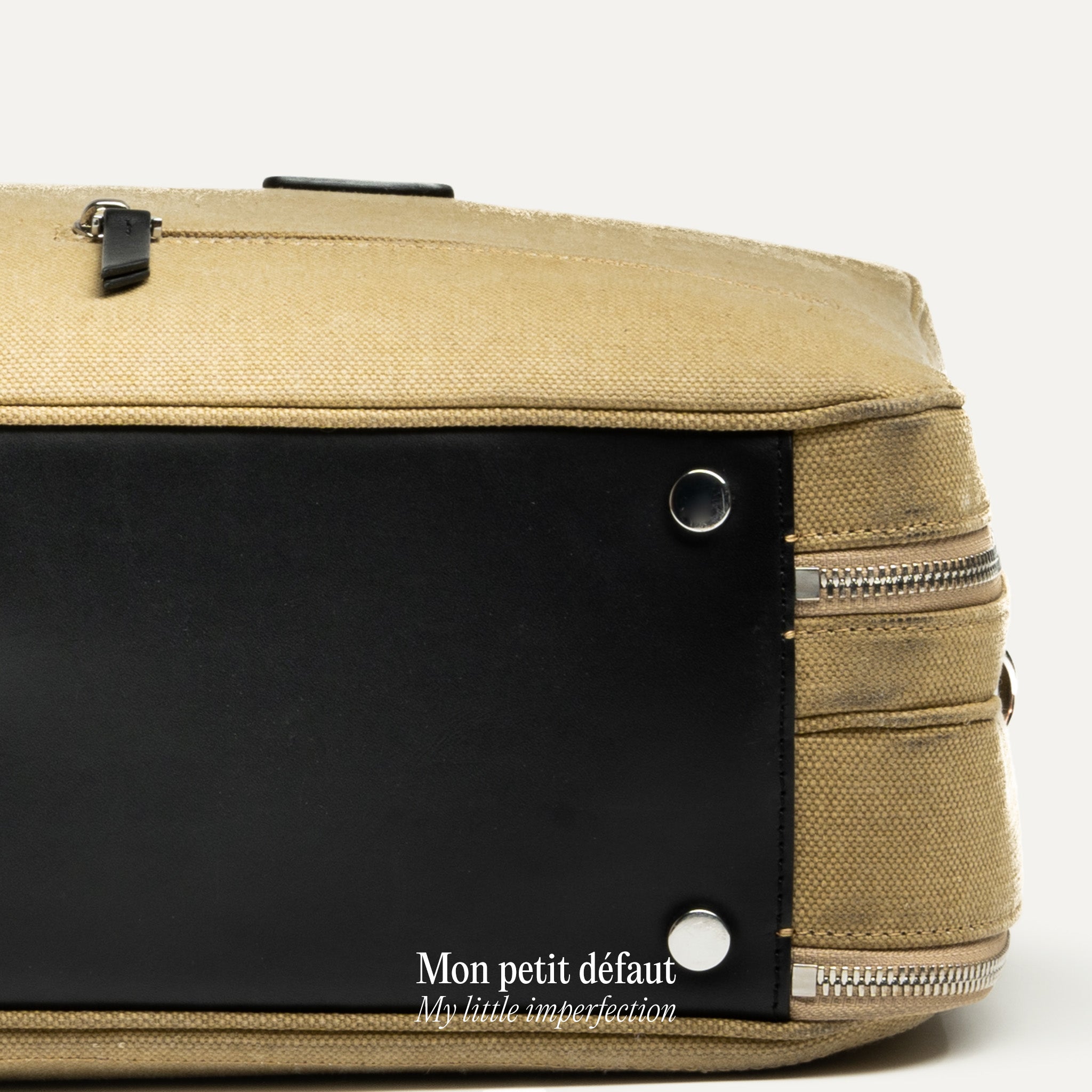 Nous avons travaillé cette version du sac 36h en mixant notre toile de coton olive et notre cuir au tannage végétal noir. Une association de matières et de couleurs qui donne du caractère à ce sac. Ce sac a été conçu pour parfaitement répondre aux besoins de courts séjours : un volume très compact avec 2 compartiments distincts pour vous permettre de voyager avec vos affaires de bureau et vos vêtements du lendemain.