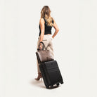 Le sac peut se porter à la main, à l'épaule ou en bandoulière grâce à sa sangle ajustable en cuir incluse. Et pour les voyageurs réguliers, une sangle arrière rétractable et aimantée permet de fixer le sac à la poignée d'une valise.