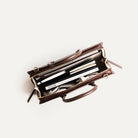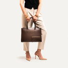 Le porte-documents MILIA en cuir marron incarne une esthétique épurée et minimaliste. Sa silhouette fine met en valeur notre cuir lisse à la finition naturelle, subtilement contrasté par des empiècements en cuir grainé.