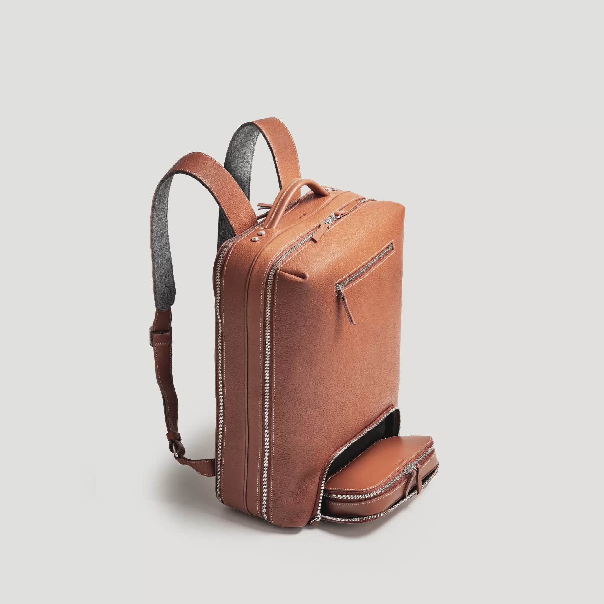 Le sac à dos GASPARD est ici réalisé dans notre cuir grainé cognac, un cuir pleine fleur souple et résistant, tanné selon un procédé semi-végétal qui développera une belle patine naturelle avec le temps.