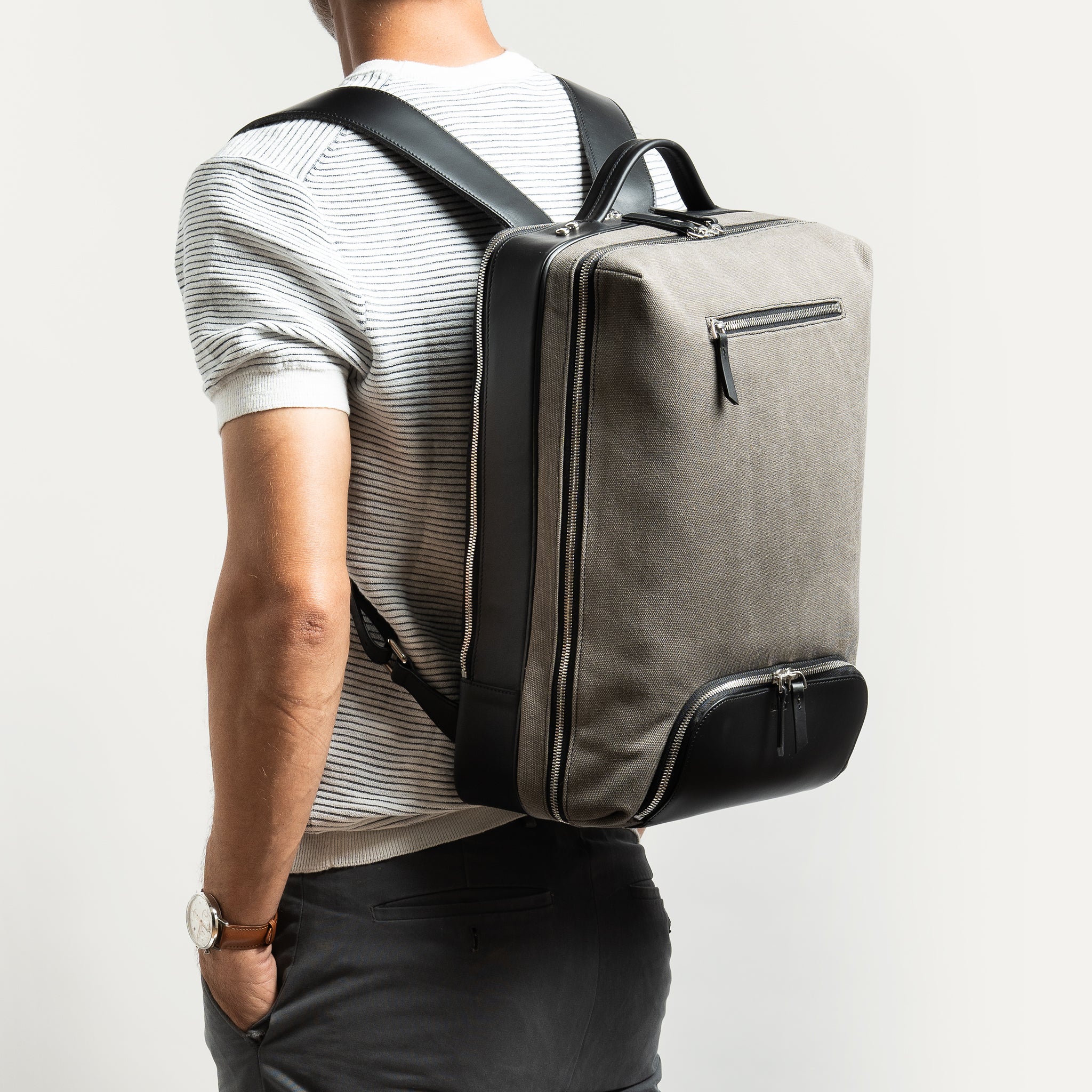 ANTOINE | Toile grise & cuir noir - Imparfait #11