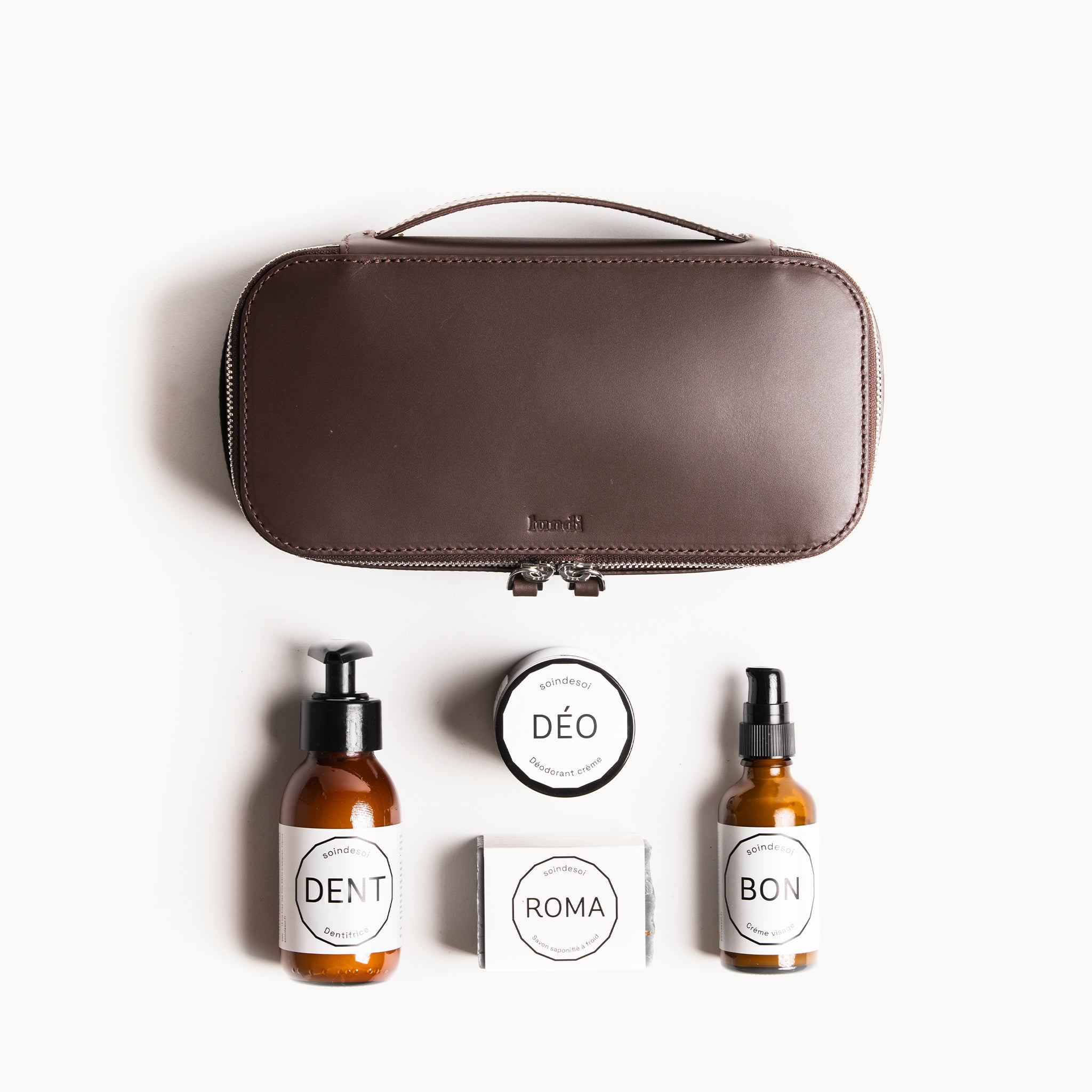 Plongez dans une routine de soin conçue pour l’homme d’aujourd’hui, où élégance et naturalité se rencontrent. Le pack Soin de Soi × lundi associe une trousse de toilette en cuir grainé ou lisse, disponible en quatre coloris raffinés — à des soins bio pour homme pensés pour durer et sublimer les gestes du quotidien.