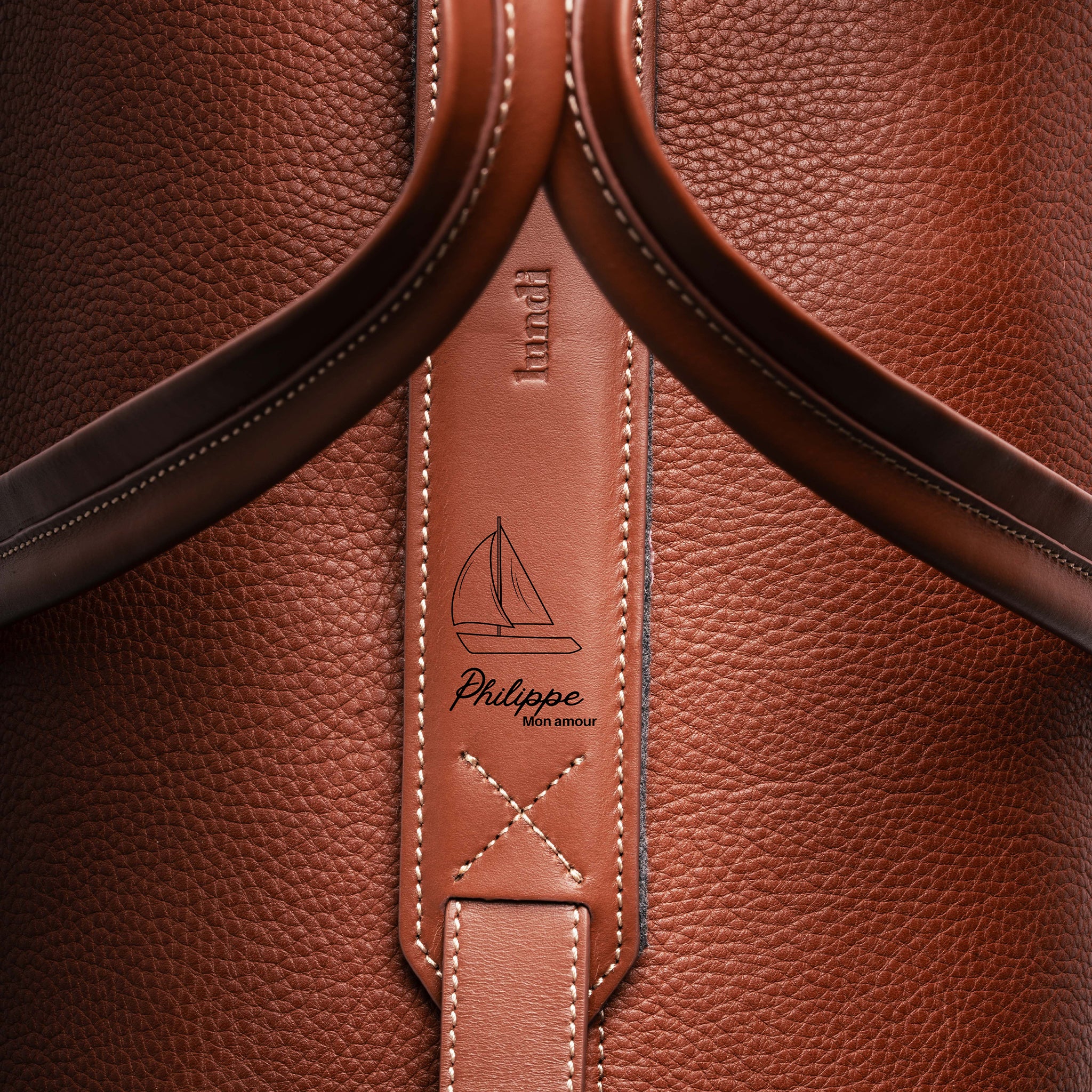 Pour nos sacs de voyage, la gravure peut se réaliser sur la tirette de fermeture à glissière ou sur la sangle épaule.