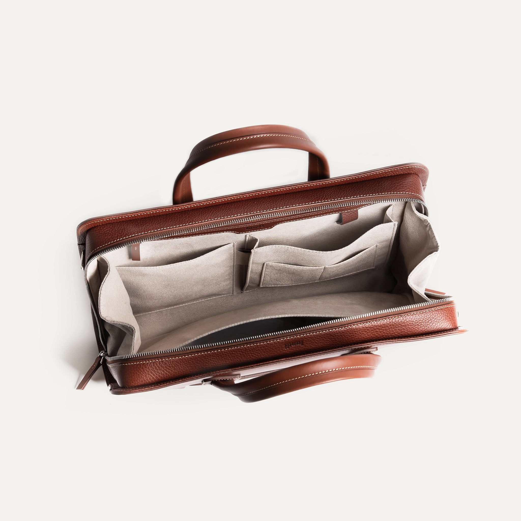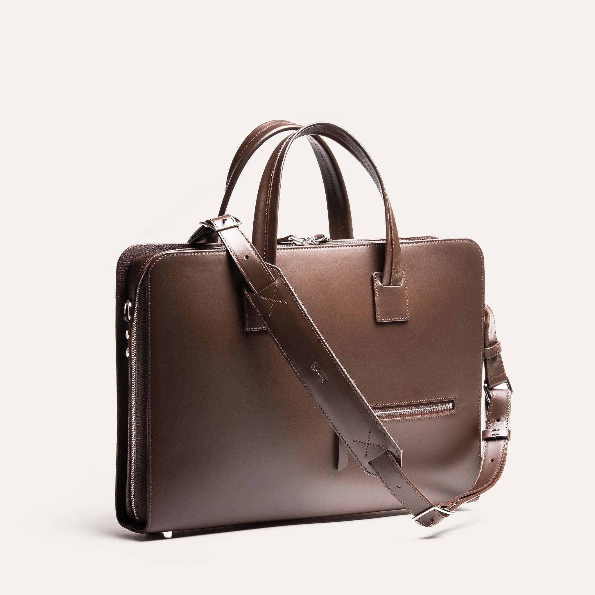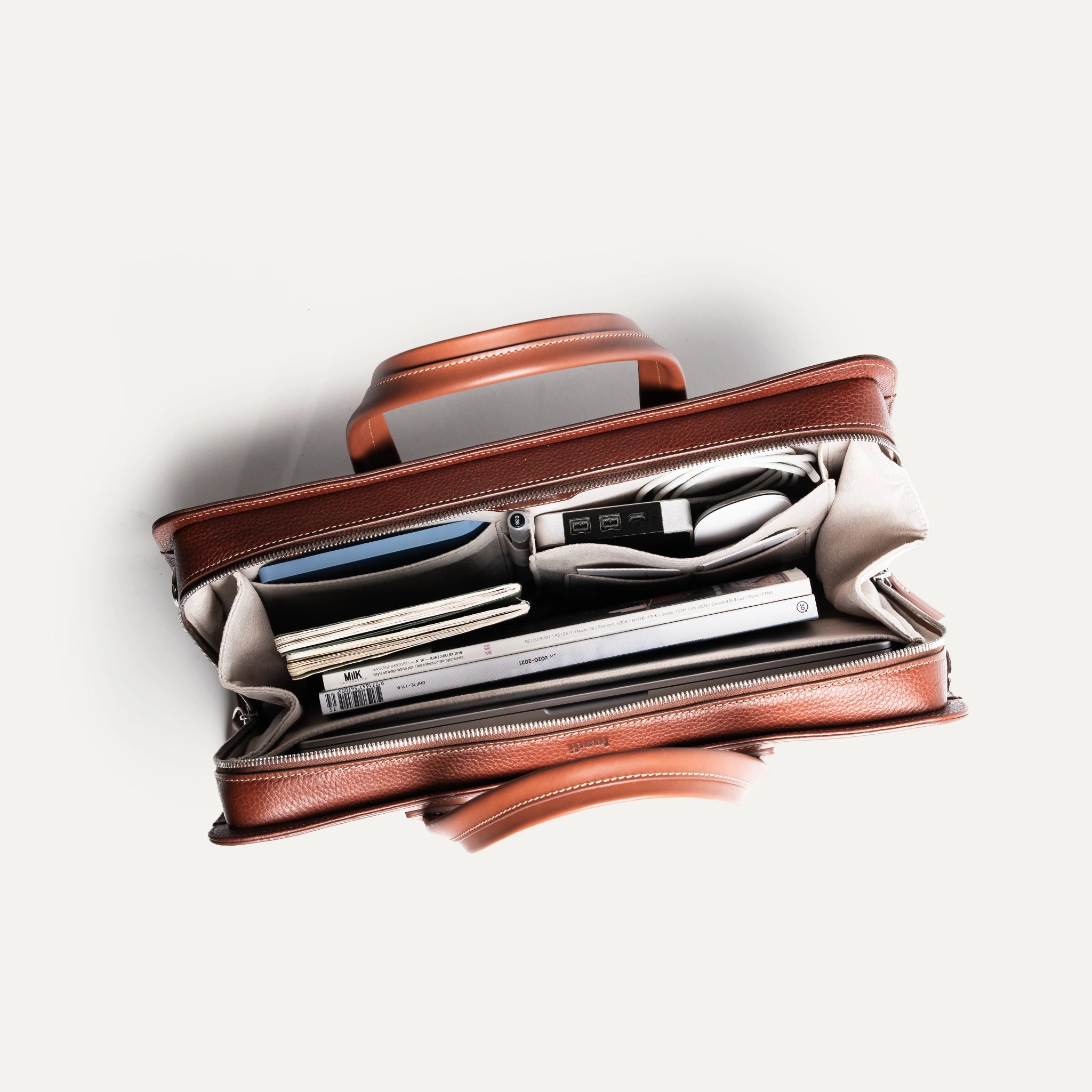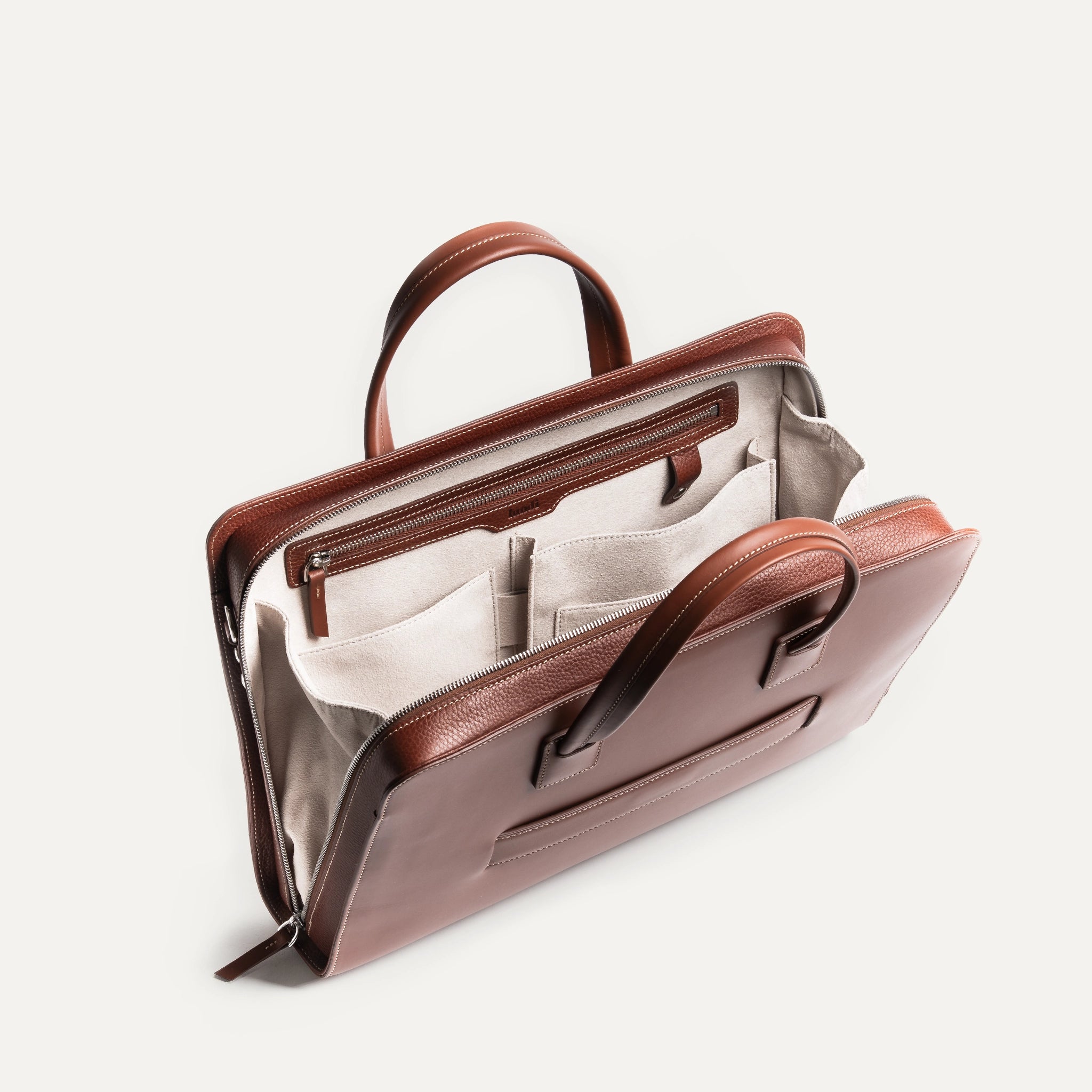 Dans sa version Cognac, le porte-documents ISACK révèle une toute autre présence. Une teinte naturelle, chaleureuse, qui capte la lumière et évolue avec le temps.