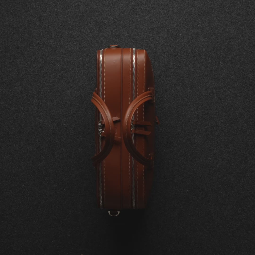Ce modèle Tilio II est une relecture subtile de notre précédent sac 36h. Nous avons repensé sa construction pour en affiner les lignes, adoucir les courbes et créer une silhouette plus épurée, parfaitement adaptée à notre cuir grainé cognac.